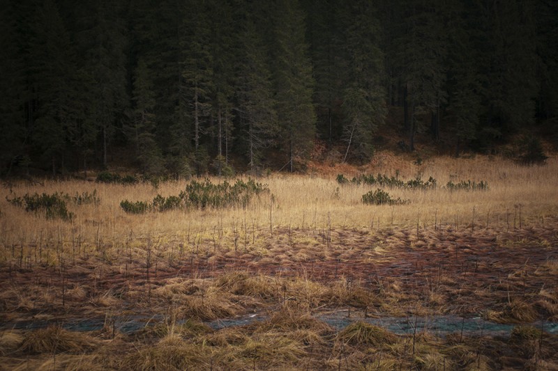 Prà delle nasse (views of trees in autumn). "Prà delle nasse" is one of the protected biotopes of Trentino-Alto Adige, a region in the North-east of Italy. It is located in San Martino di Castrozza, a mountain locality. Though very close to the village, and caught in the middle of a relatively tame nature, this small, untouchable, peaty and swampy place projected a sense of mistery and wild that captured me.