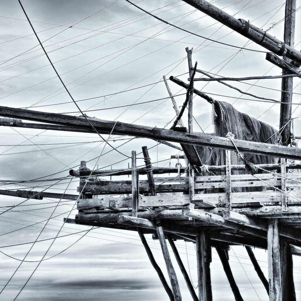 The trabucco is an old fishing machine typical of Italy spread along the coast of southern Adriatic imported from Phoenicians. Trabucchi are protected as historical monuments. This shots are part of a photographic project titled "Phoenician Fishing".