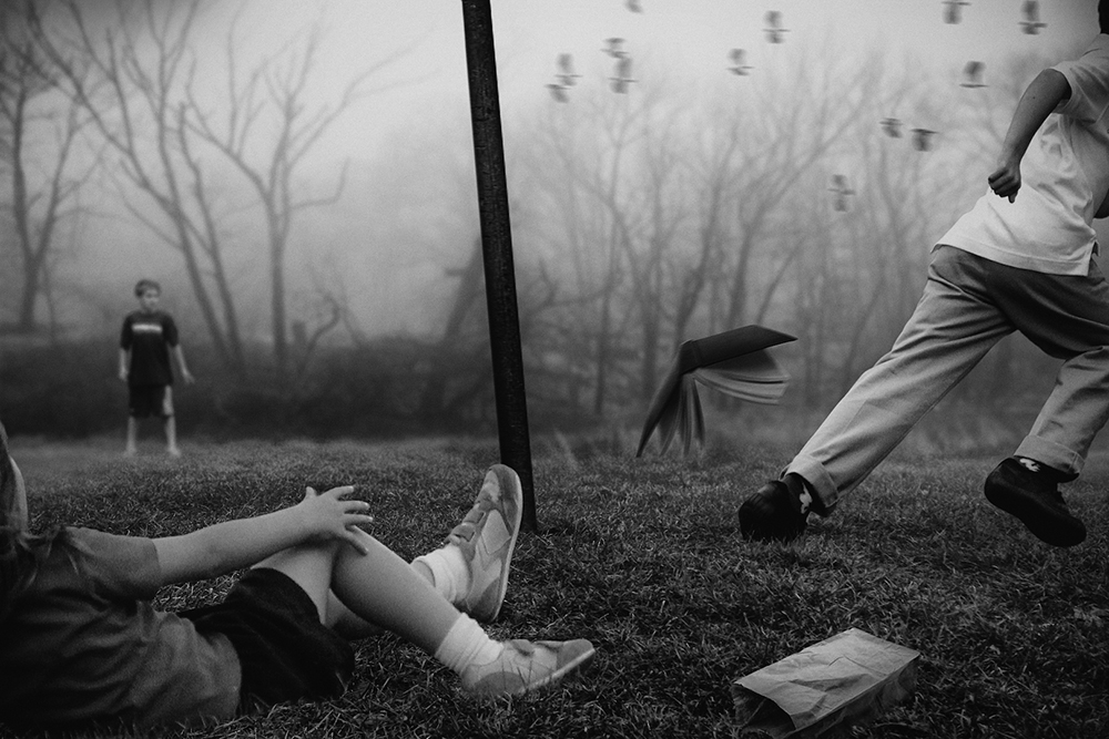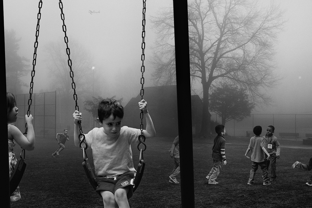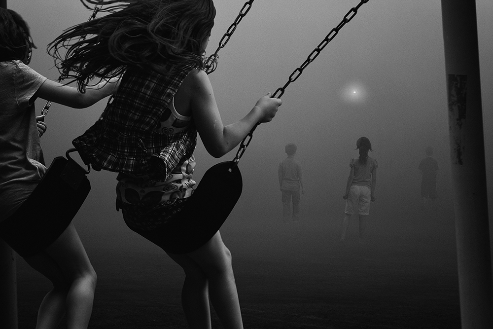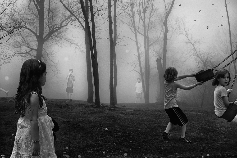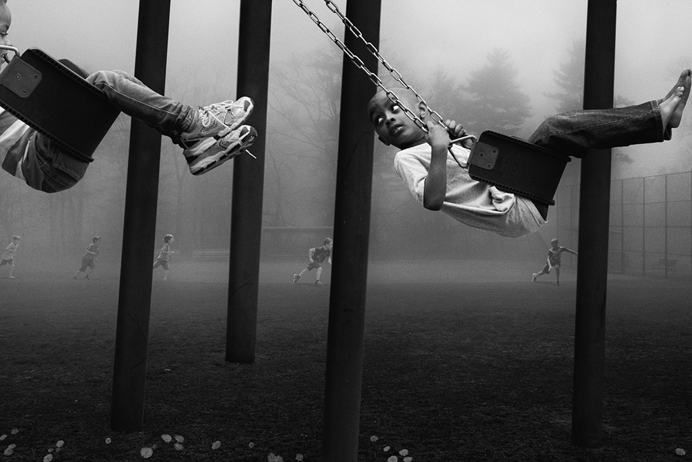 The Playground Series created by Francisco Diaz + Deb Young Beneath the surface of “The Playground Series†is an underlying tension cloaked in innocent fun. We created this series as a visual metaphor for the condition in our highly stratified world where social relationships reflect a low degree of integration and meaningful interaction coupled with a high degree of isolation between individuals in a community environment. Each image in “The Playground Series†is fashioned by montaging together dozens of unrelated photographs into a coherent piece that has the feel and look of a single capture. But, the more the viewer stares at each individual work, the more they start to realize something is just not right. The unreality of each piece begins to be felt by the viewer, which adds to the overall tension of the series. The tension the viewer feels both in the specific imagery and where the works start to seem “less real, unusual†encourages the notion that events in which we are engaged in everyday life, increasingly tend to feel random and disconnected from a community, often with apathy and alienation being the result.