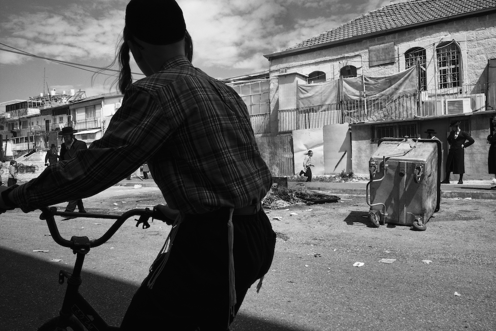 Mea Shearim was established in 1874 as the fifth settlement outside the walls of the Old City of Jerusalem. Its name is derived from a verse in the weekly Torah portion that was read the week the settlement was founded: "Isaac sowed in that land, and in that year he reaped a hundredfold (×©×¢×¨×™× ×ž××”, Mea Shearim); God had blessed him" (Genesis 26:12). Today, Mea Shearim remains an insular neighborhood in the heart of Jerusalem. With its overwhelmingly Hasidic population, the streets retain the flavor of an Eastern European shtetl. Life revolves around strict adherence to Jewish law, prayer, and the study of Jewish religious texts. The sights that I witnessed during my initial visits to this area were different from anything that I’d ever seen, because the residents resembled one another so strongly. Traditions in dress code for men include black frock coats and black hats. Long, black beards cover their faces, and many grow side curls, called payots. Women and girls are urged to wear what is considered modest dress – knee-length or longer skirts, no plunging necklines or midriff tops, and no sleeveless blouses or bare shoulders. Some women wear thick black stockings all year long, even in summer, and married women wear a variety of hair coverings, from wigs to head scarves. The residents speak Yiddish in their daily lives, as opposed to the Hebrew language spoken by the majority of Israel’s population. The only use of Hebrew for residents is in prayer and religious study, as they believe that Hebrew is a sacred language to be used only for religious purposes. I began to document Mea Shearim in early 2014. Documentary photography is always a complex art. As I frequented the streets of the settlement, I realized that I would have to appear less like an outsider in order to properly capture the lives of this dynamic community – I would have to blend in. I began to alter my appearance and dress accordingly. While visiting Mea Shearim, whether in the daytime or at night, I wore only black. I also grew a long beard, and even began to eat in the settlement on a regular basis. Today, after having been a frequent visitor to the settlement for over a few years, I am witnessing the accomplishments of my photographic research. I am beginning to see the uniqueness and appeal of this place. When I am visiting, I feel the wonder of the place. I developed a feeling of belonging, a feeling or relevance. Photography as an art form helps me document and chronicle the ongoing pursuit of the old versus the new, the past versus the present, the everyday life of a city within a city.