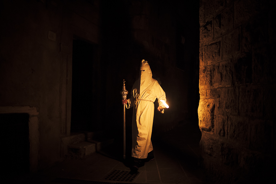 Since 1200, on the Friday night before Easter, the Procession of the Dead Christ takes place in Orte. It‘s a very silent procession in the streets of the town, completely darkened, and lit only by torches held in hand by hooded men, belonging to the Brotherhoods, and veiled women in black. This is the oldest ritual in Italy. Due to its solemnity and intimacy, the Procession pushes everyone to discover the truly meaning of faith and the mistery of Jesus death.