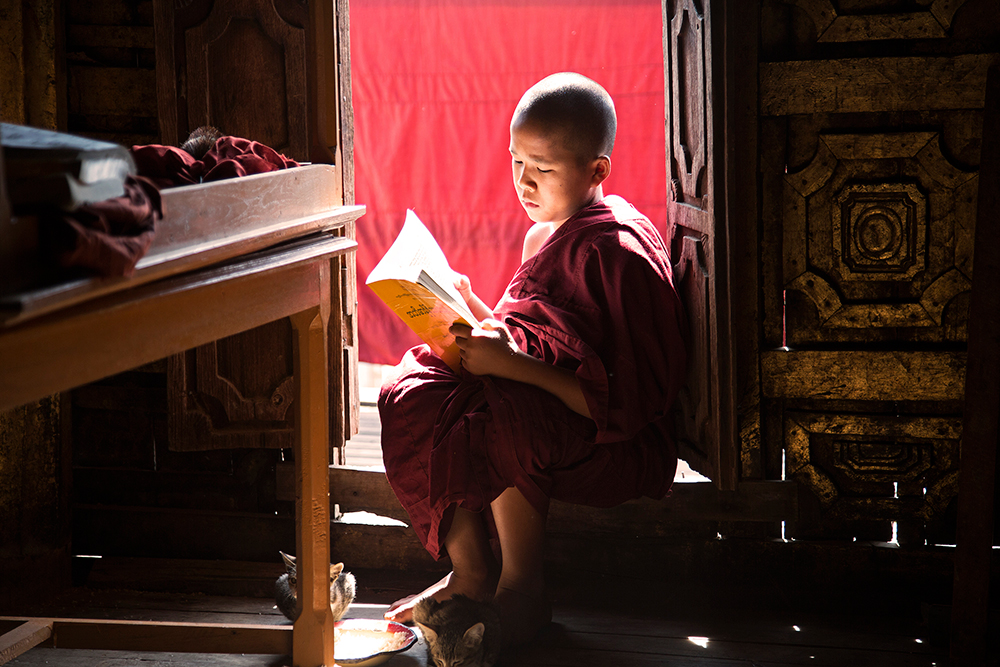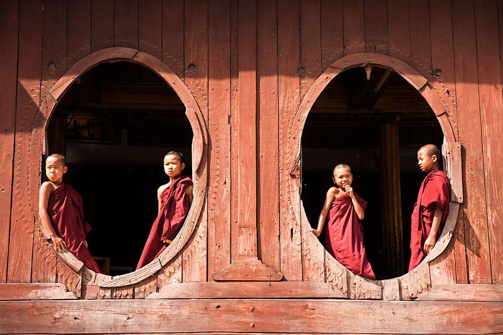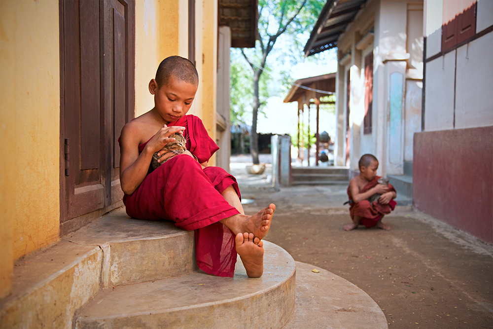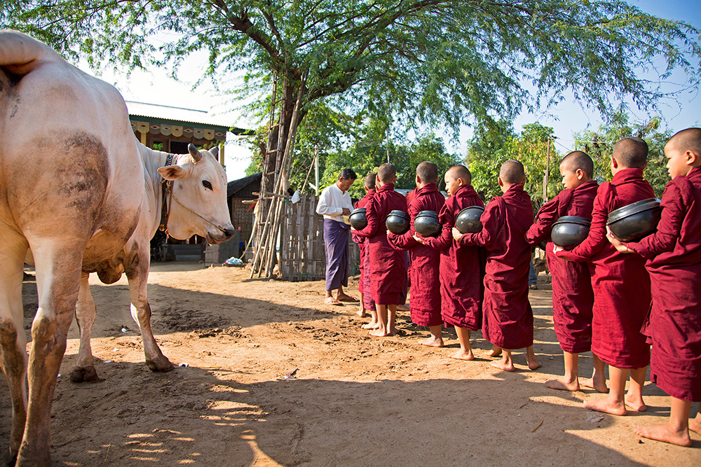 Between ages of ten and sixteen, most young Burmese men and some young women become Buddhist novices and go to live in a monastery. While most young men remain at the monastery for only a short time before returning to the secular life, some become fully ordained monks. The novices generally lead a carefree life while keeping 10 precepts as compared to a fully ordained monk with 227 precepts. In addition to indulging in activities such as soccer, video games and watching television, the novices also collect alms every morning, following a tradition that goes back hundred of years.