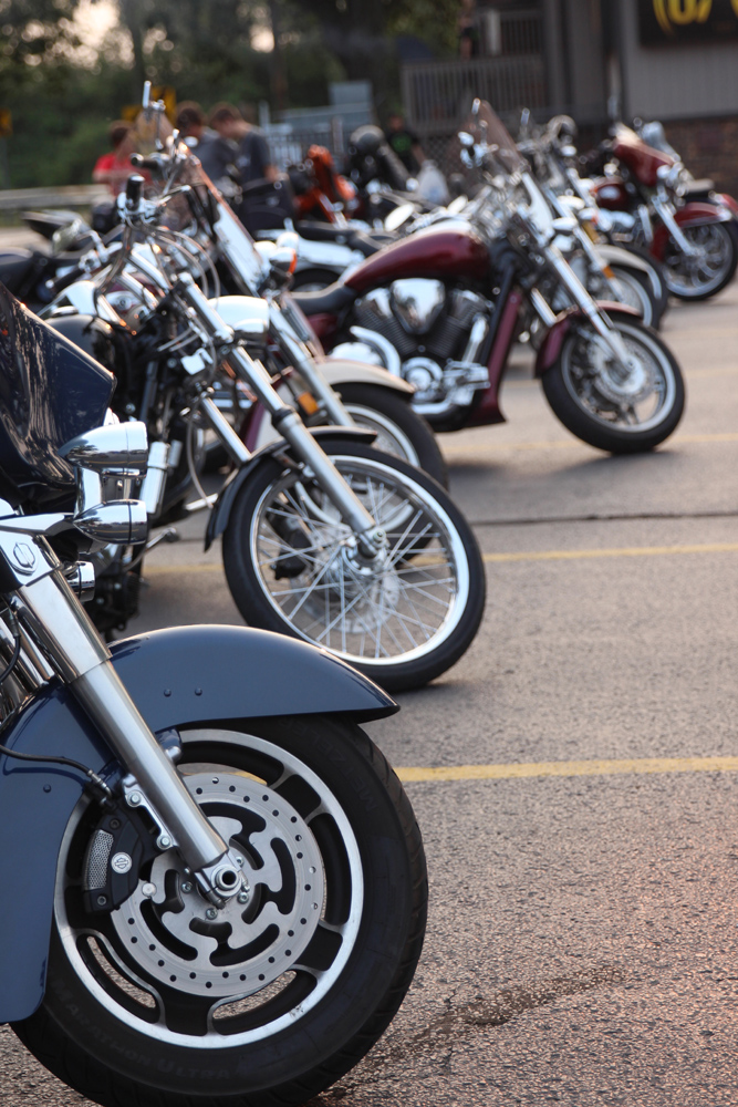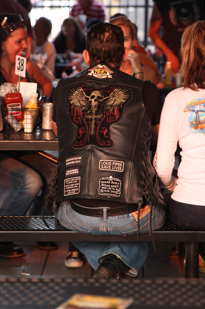 Members of the American subculture, started shortly after World War II and seemingly inspired by the film "Easy Rider", "Bikers", as well as motorcycle enthusiasts gather every weekend at a Midwest "watering hole" for entertainment and commendatory.