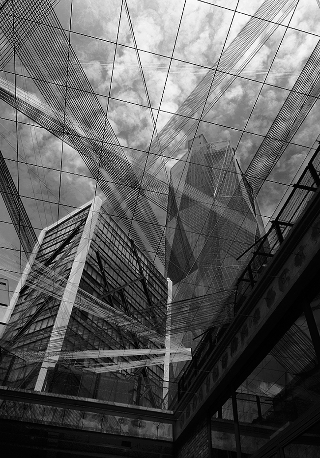 The cobweb building exterior and the strings design remind of tangled webs we weave throughout our lives.