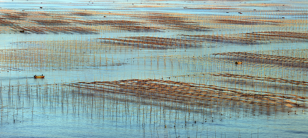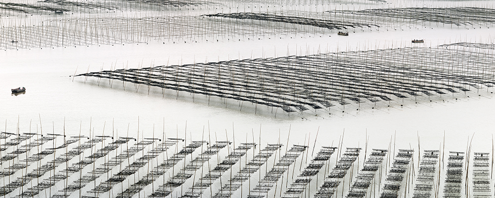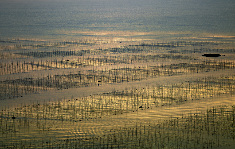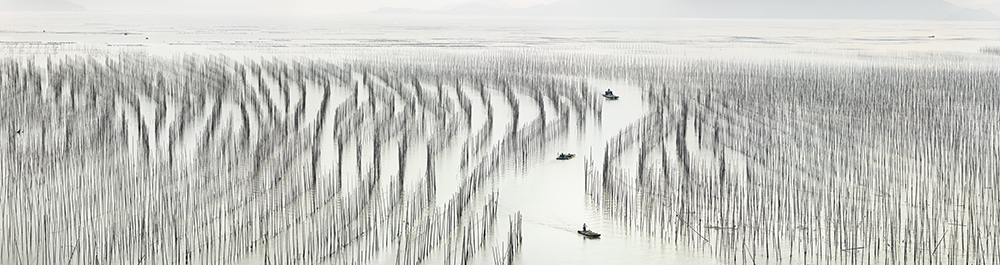 Known as the most charming fishing village of China, Xiapu is located at the northeast part of China's Fujian province. Xiapu nevertheless has the largest mudflat in the country, Along its tiger-striped beaches, bamboo structures and poles, buoys and fishing vessels provide human counterpoints to the area's natural beauty. I have spend many time for the last 2 years to capture the patterns in the Mudflat made by men with bamboos the scenery is constantly changing, and the people making a living there adjust to the tides that sweep through, bringing in fresh sea water, and work with the environment. It is a rustic memory of the Chinese traditional way of life.