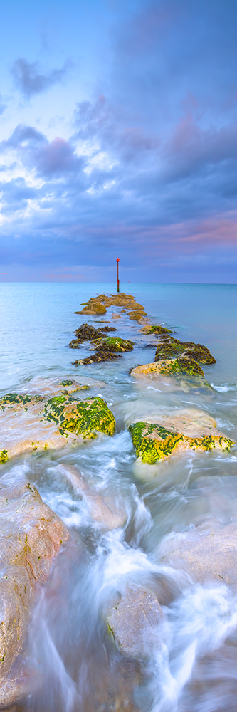 I regularly visit Groynes Rock Point in Pagham during the evening to try and capture a good foreground to background image. On this particular evening I carefully stood on the rocks with the tripod and waited for low sunlight to the side of me. Suddenly the light changed to a beautiful blue reflection on the surface of the sea with the clouds. I managed to capture this stunning image on an October evening.