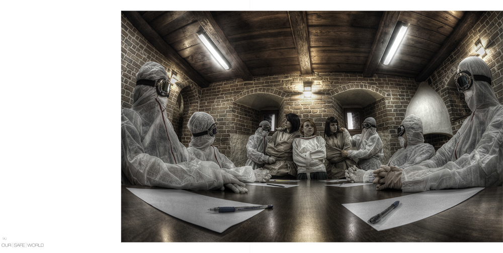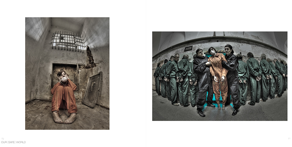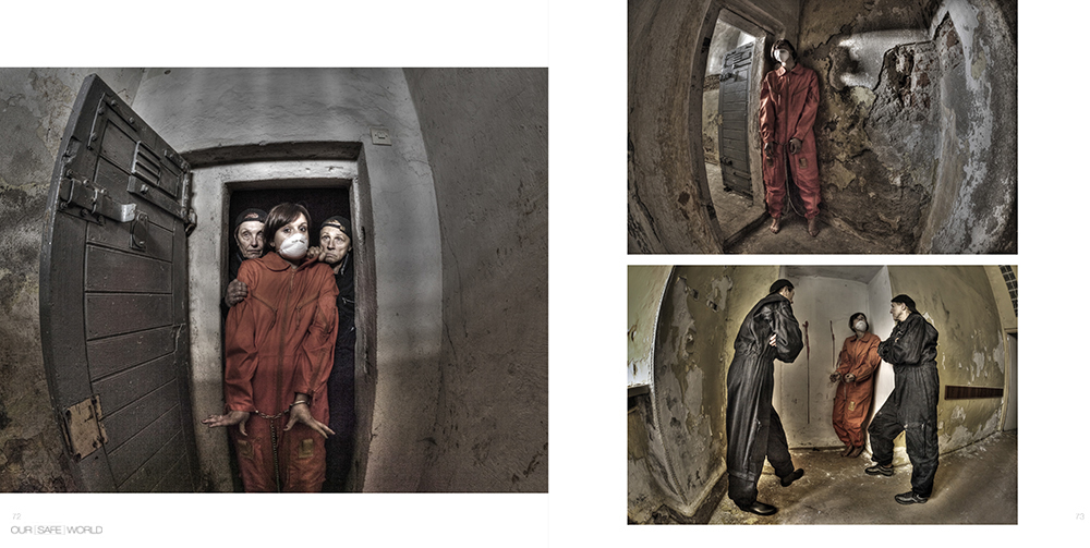Project "Our safe world" Photo book issued in 2016. Manifesto: We live in a world known as the "Global Village", in which the development of science and technology provides us with tools for unrestricted personal development. However, it is hard to imagine the creative development of personality without culture and art. Key role in the culture-played artists - professional and amateur. It is they who inspire us to pose the question marks where others satisfies the current state of affairs. We meet and penetrate the world around us, both produced by the hands of and mind of man and nature, wildlife, where a large part of the invaded and from which we derive raw materials and energy used in the development of civilization. Along the way, it appears that this our civilized world in which any "ideas of tomorrow" implemented and implemented today, it does not become more safe for humans, are many issues that apparently are rigorously controlled, spinning out monitoring of existing systems. So it is not difficult behavior and actions using gap in the existing structures or those revolt or protest against the all- engulfing our control. Allegedly exercised for our good, causes of action making us even greater supervision. A spiral of conflicting activities and behavior is growing, and we in the broadly defined security are subjected increasing infiltration. In many places we are used to control systems, including personal, involving for photographing, filming, reviewing, eavesdropping and collecting all these data in order to provide us with even greater security in our lives daily as well as travel, which has become a common part of our lives. Efforts to ensure our security worse from year to year, and the reason for their are rising vandalism, or penetration into our world of people with culturally and culturally diverse regions of the thought of destroying ourselves and our reality. The author is not intended to provide a detailed reply to the question of whether it is legitimate and whether it makes sense from the standpoint of social and cultural structures. As artist I have the right to speak the language of art, using word and image to a dialogue with society, to draw attention to the absurdity of this situation - the deprivation of liberty and freedom for their behavior. This exerts a rebellion and a desire to pose the question: - What are the boundaries limiting our rights and freedoms, and personal freedom to protect our freedom of life in our cultural system and society? - Is not it true that in order to preserve our free world, consciously fall into in captivity designed to preserve our freedom? - Is agreeing to restrict our freedom of action and thought and submitting to all control and supervision does not fall into the trap that the peak of individual freedom will be its total incapacitation? The author is not intended to provide a detailed reply to the question of whether it is legitimate and whether it makes sense from the standpoint of social and cultural structures. As artists I have the right to speak the language of art, using word and image to a dialogue with society, to draw attention to the absurdity of this situation - the deprivation of liberty and freedom for their behavior.