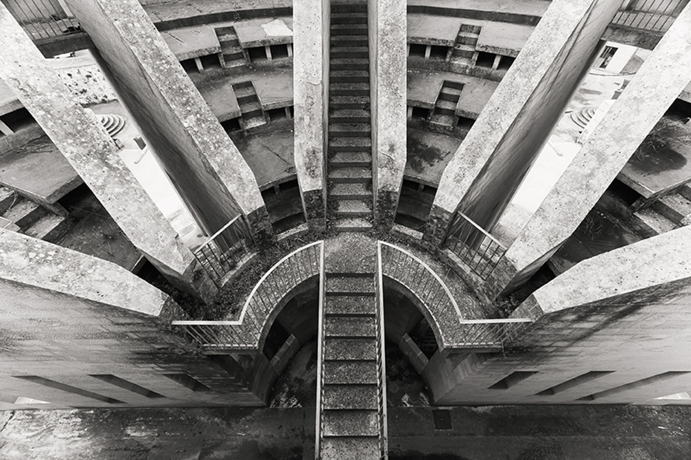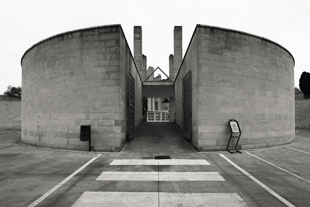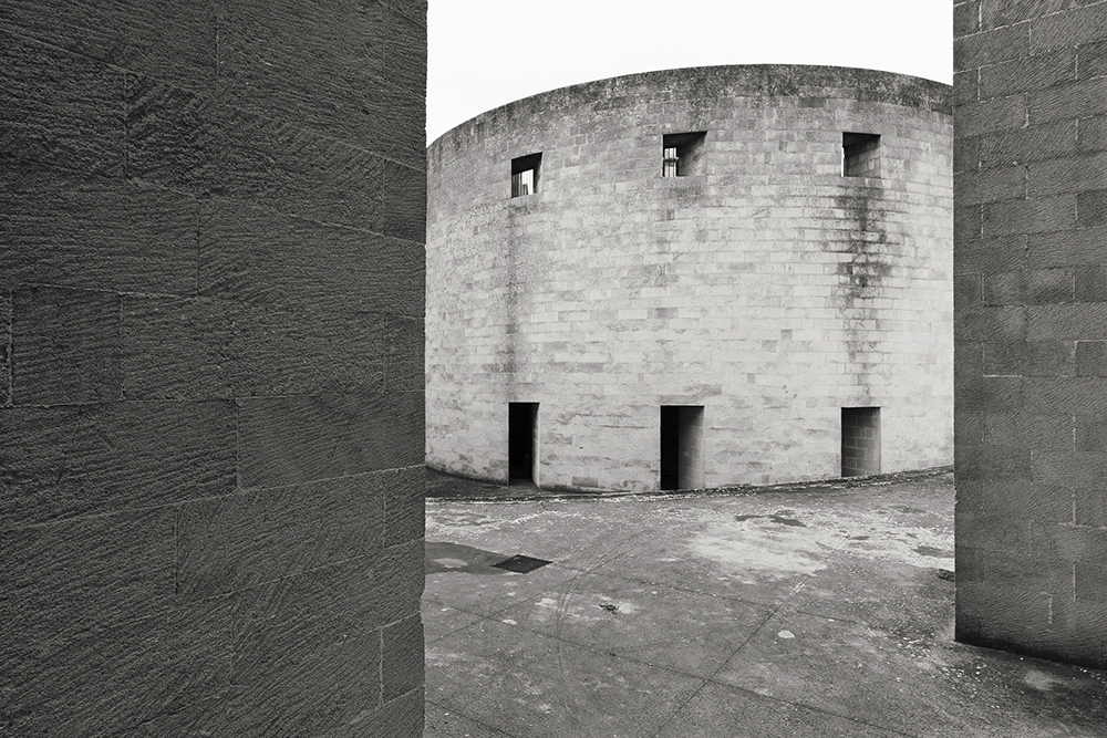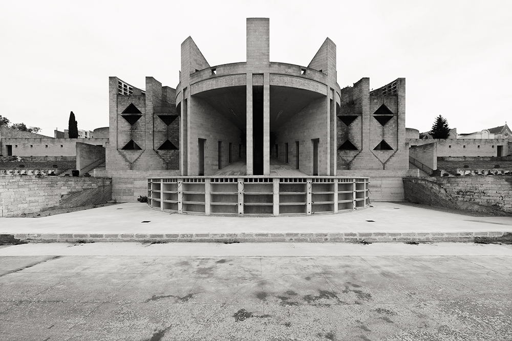In 1982 was inaugurated in Parabita the new Monumental Cemetery, an urban intervention brave of you are immediately interested prestigious national and international journals of urban planning and architecture and that has sparked a lively debate among scholars and professionals. It 'was designed by italian architects, to reconnect to the great building tradition of Puglia, have chosen to use, along with the concrete, a type of local sandstone, the carparo, using blocks for the exterior to create long sinuous wall surfaces. The monument, enclosed in a square of 120 meters on each side, is spread on the flanks of a gentle hill and finds inspiration in the planimetric layout to the desired symmetrical a composite capital. The complex is an example of contemporary architecture at the highest level and has become a reference point in the discussion of the architectural developments of the post-modern. This series was my goal to find the intuited peculiarities and designed by architects, their signature work, views that reveal particular geometries.