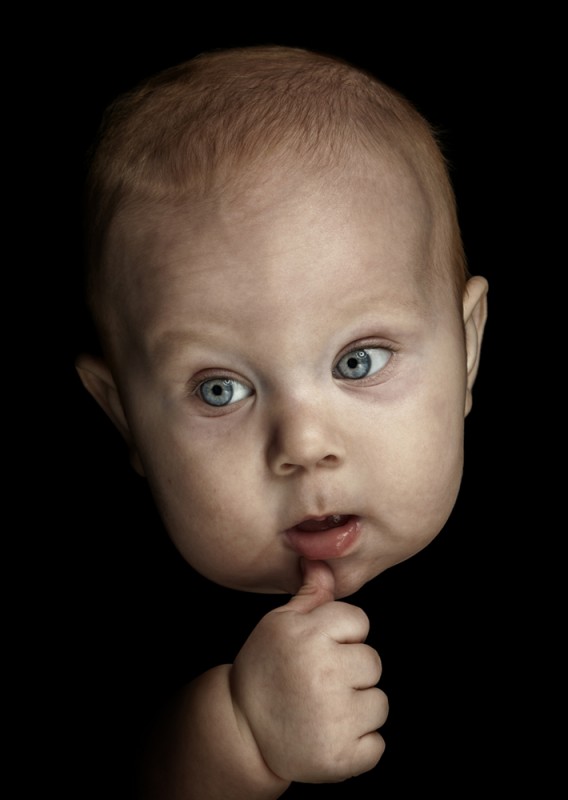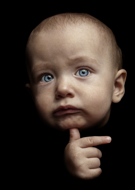 INFANTO is a series of "alternative" portraits of the six-month babies. When we speak about little kids we instantly imagine nice pictures of funny cute infants surrounded by teddy bears, baby's dummies, toys and flowers. But behind this pinky-blue sweet cloud it is hard to spot a developing person. Sometimes you notice a sparkle of a “special knowledge†in the eyes of a baby. As if it is a wise creature in front of you. Usually we don’t see it on photographs. My ambition is to bring to light special aspects of infant’s character, to capture the moment of “baby’s thoughtfulness†or “infant's adulthoodâ€. The black background and dark colors where chosen on purpose to separate the person from familiar but unnecessary colorful world of children’s vanity.