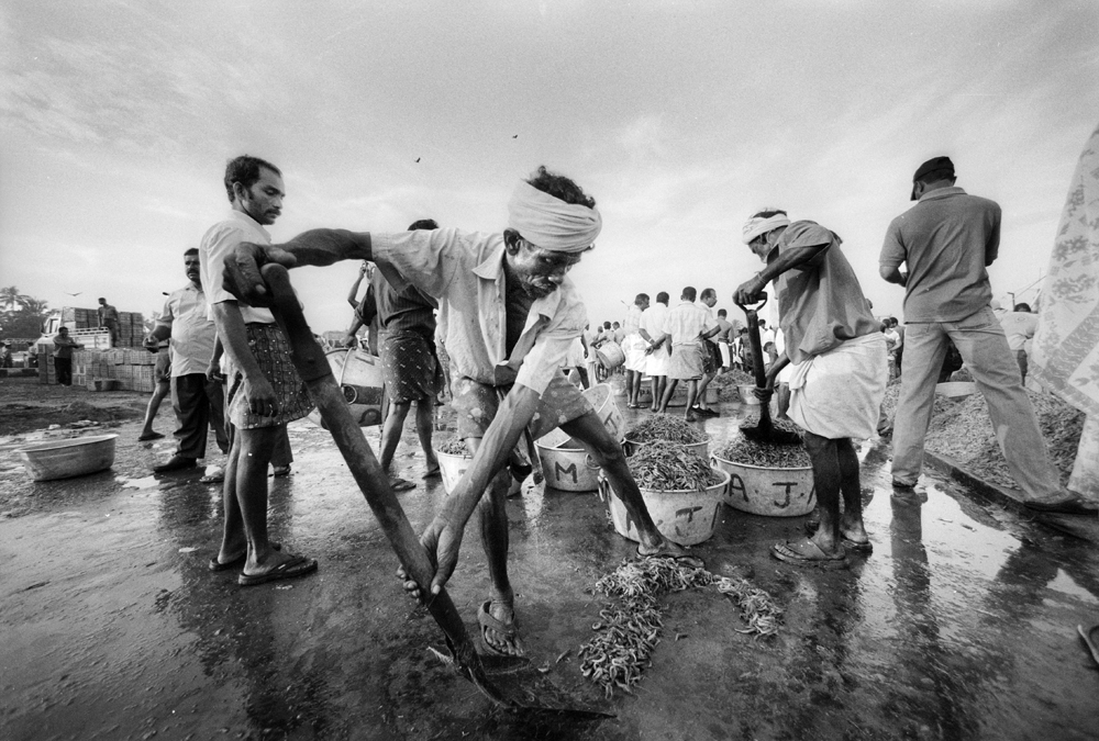 These images are selected from a long-terms project about the Kerala fishermen. They were taken between 2010 and 2015 along the coast from Kollam to Trivandrum and include images of work that takes place around the intensive and mechanized fishing which is based in Neendakara port and in the surrounding area. They are, in fact, the testimony that in the era of turbo capitalism and of the financial power, the profitability over human labor remains the essence on which is based the current economic system. Low wages and intensifying pace of work were the basis of the high profits made in India and China; the same kind of exploitation is now extending to the western countries.