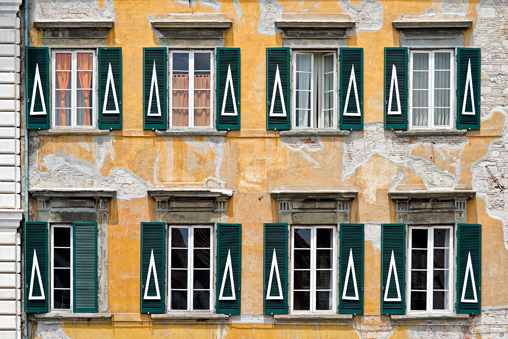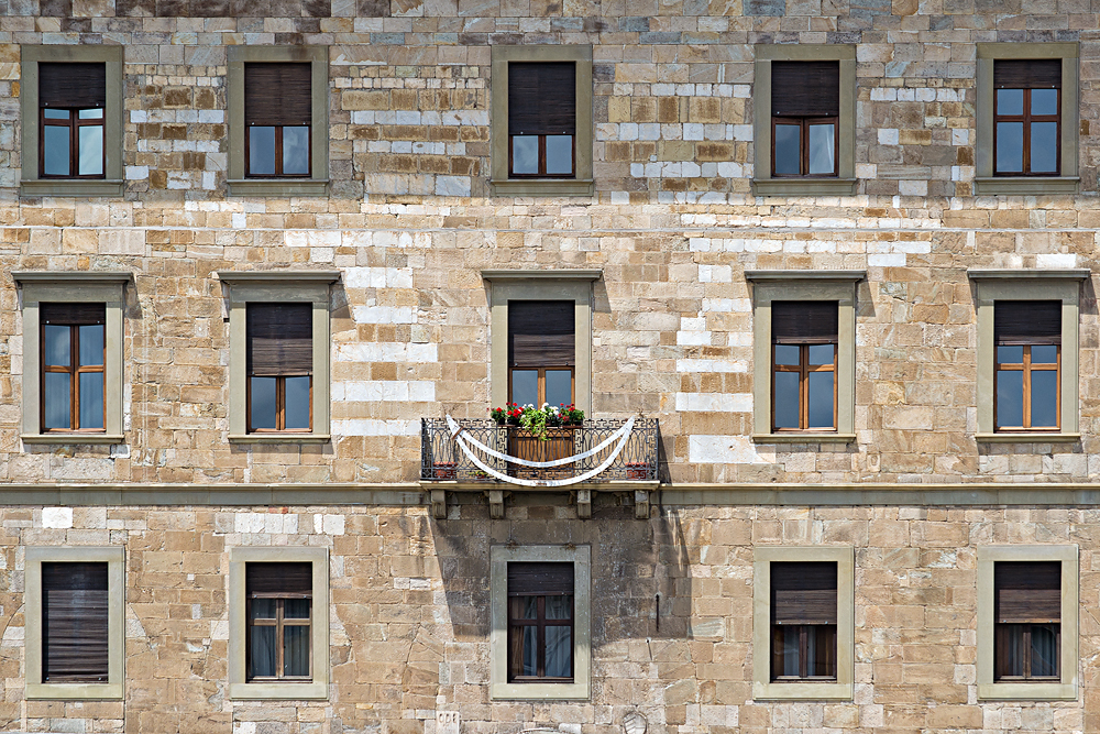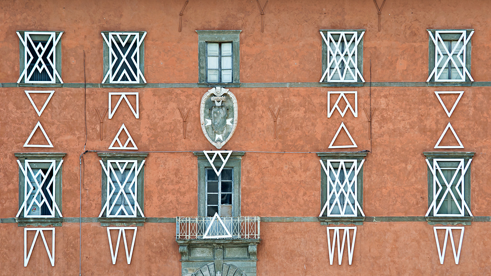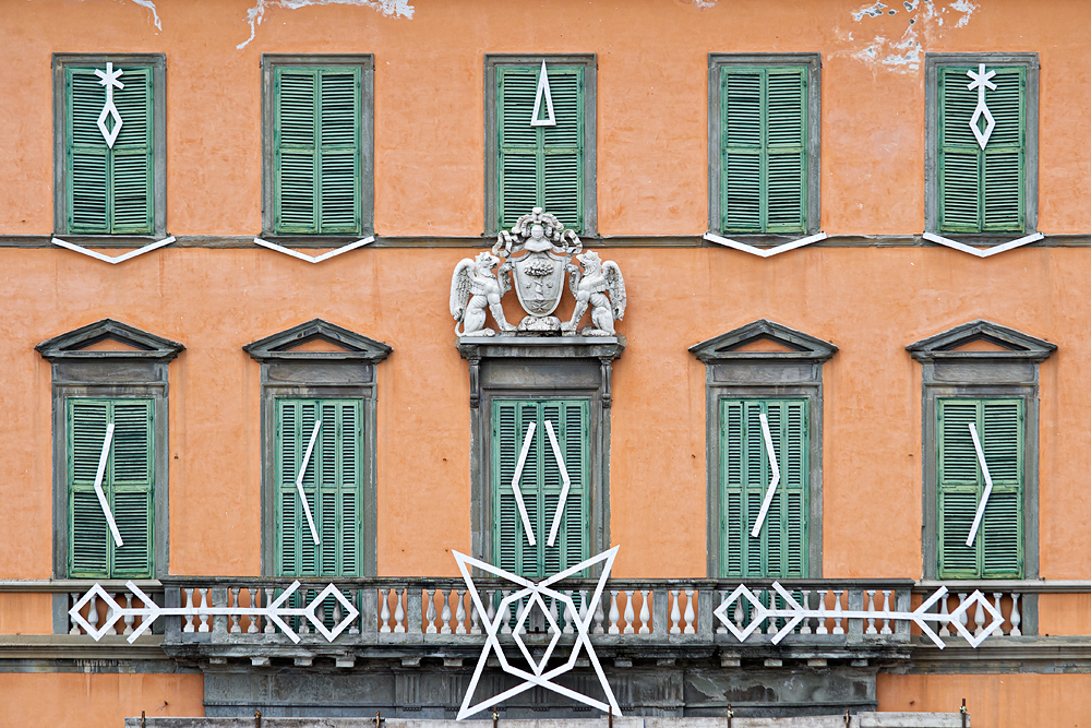 Pisa, Italy. There is a period of the year in which palaces and buildings in Pisa's Lungarni seem to speak a secret language: doors and windows are decorated with strange wooden frames, a mysterious code of signs and symbols... The month of June is certainly for Pisa the most fascinating period of the year, when the city and its citizens breathe an air of excitement and expectation, waiting for the evening of the 16th of June, the evening of the Luminara di San Ranieri, city’s patron saint, that is celebrated the day after. In the weeks before the Luminara, hundreds of white wooden frames called ‘biancherie’ in italian, are hanged on windows and doors of houses. Originally these frames should highlight the structure of houses, following accurately the shapes of doors and windows, but today they have been replaced by simply but maybe more curious and creative shapes. The night of the 16th of June, these wooden shapes will host thousands of little candles, called 'lampanini', for the celebration of the ‘Luminara di San Ranieri’ and Lungarni (the two sides of river Arno) will be enlightened only by the light of the small lamps, creating an extraordinary sight. I decided to dedicate an architectural project to the ‘Luminara di San Ranieri’, focusing on the preparation of the event and not on the more well-known part, the evening of the festivity. Looking all these wooden boards, facades seem to communicate, talking to each other with a mysterious language made of strange signs and symbols, the secret code of the title.