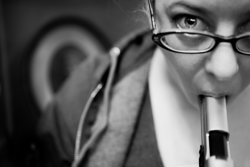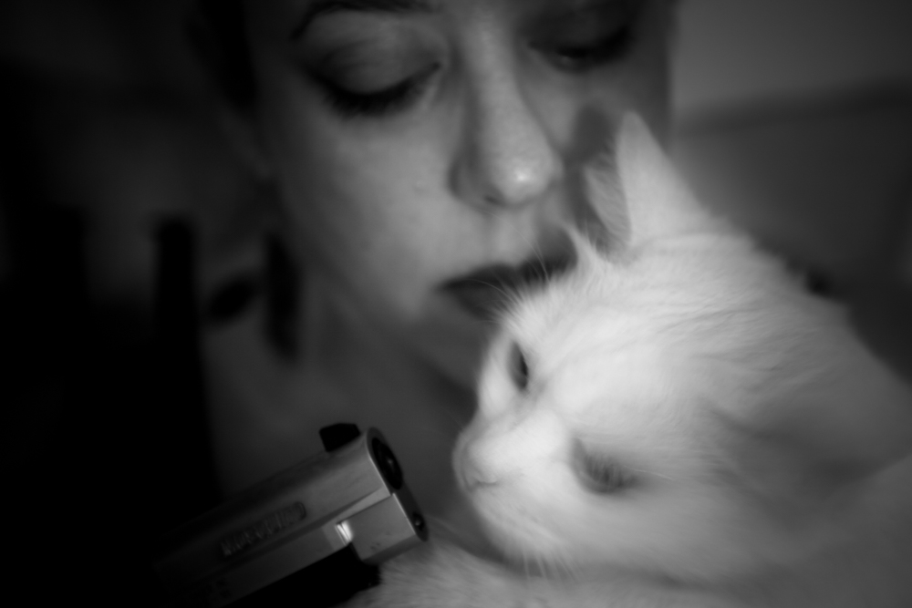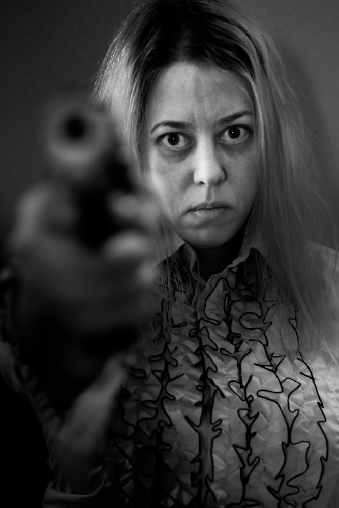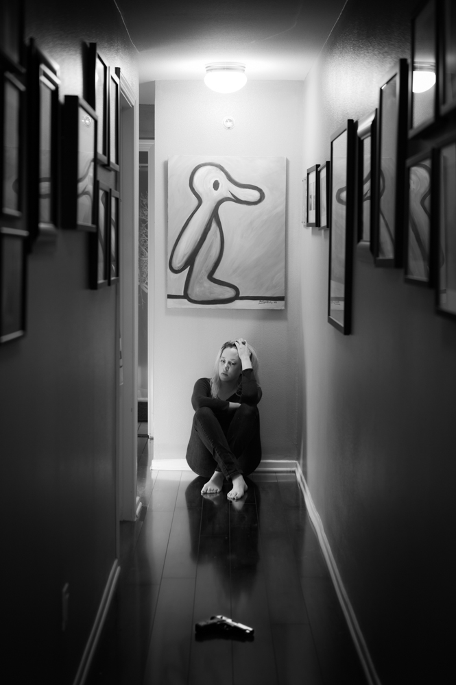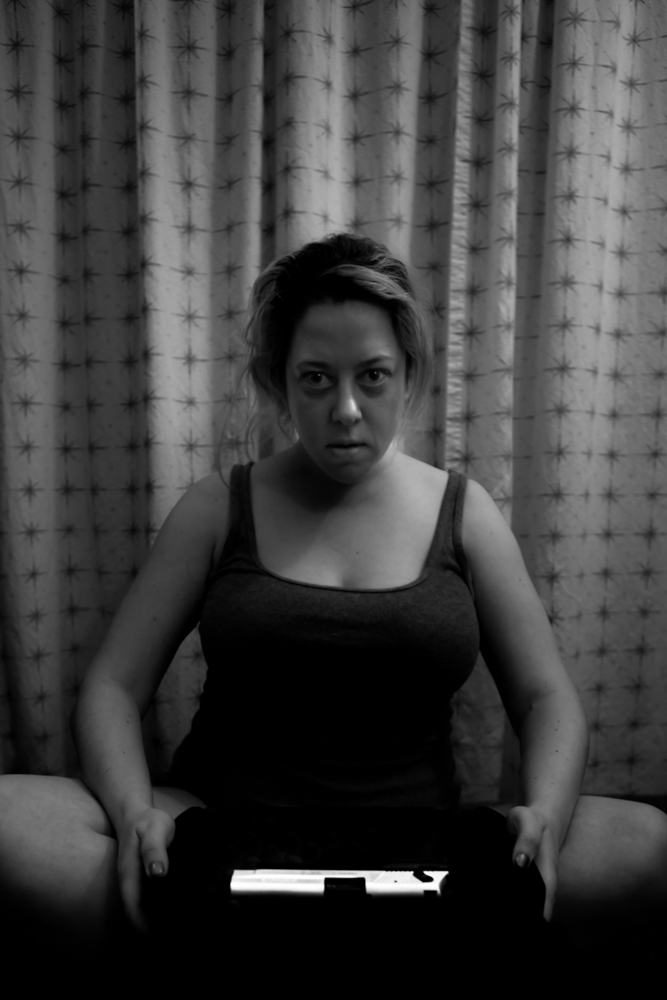 This self portrait series puts a real firearm in the hands of a 'crazy' person, the photographer herself, to portray the dangerous internal struggle of mental illness meeting with an external catalyst, a legally-purchased gun. These one to three second exposures were shot in the photographer's home, where she has successfully hidden her battle with Bipolar with Psychosis from nearly everyone for years. This work is not a condemnation of the mentally ill, but rather a personal exposé intended as a reminder that one can never know what's going on in another's mind. Viewers may recognize in themselves the rage, panic, loneliness or confusion that can make anyone go insane, if just for a moment. For the mentally ill and everyone else, guns turn uncontrollable thought into fatal action. The true insanity is that we continue to let it happen.