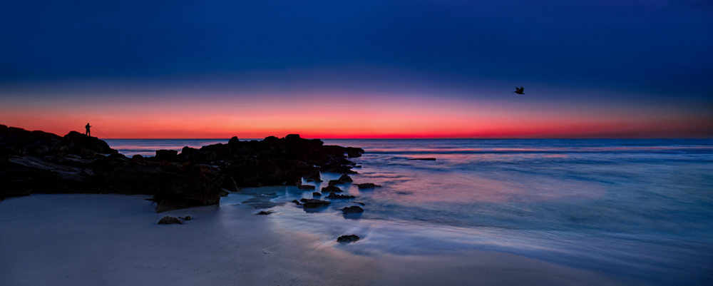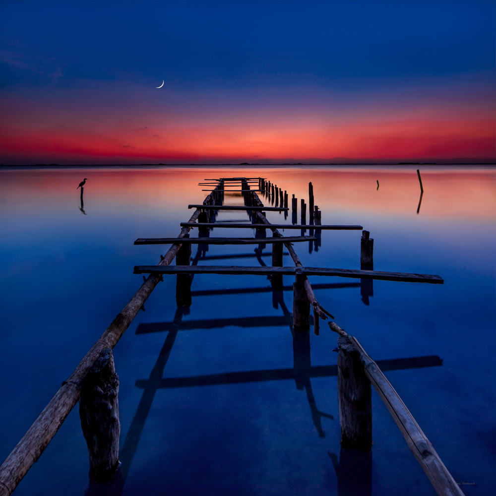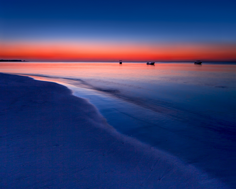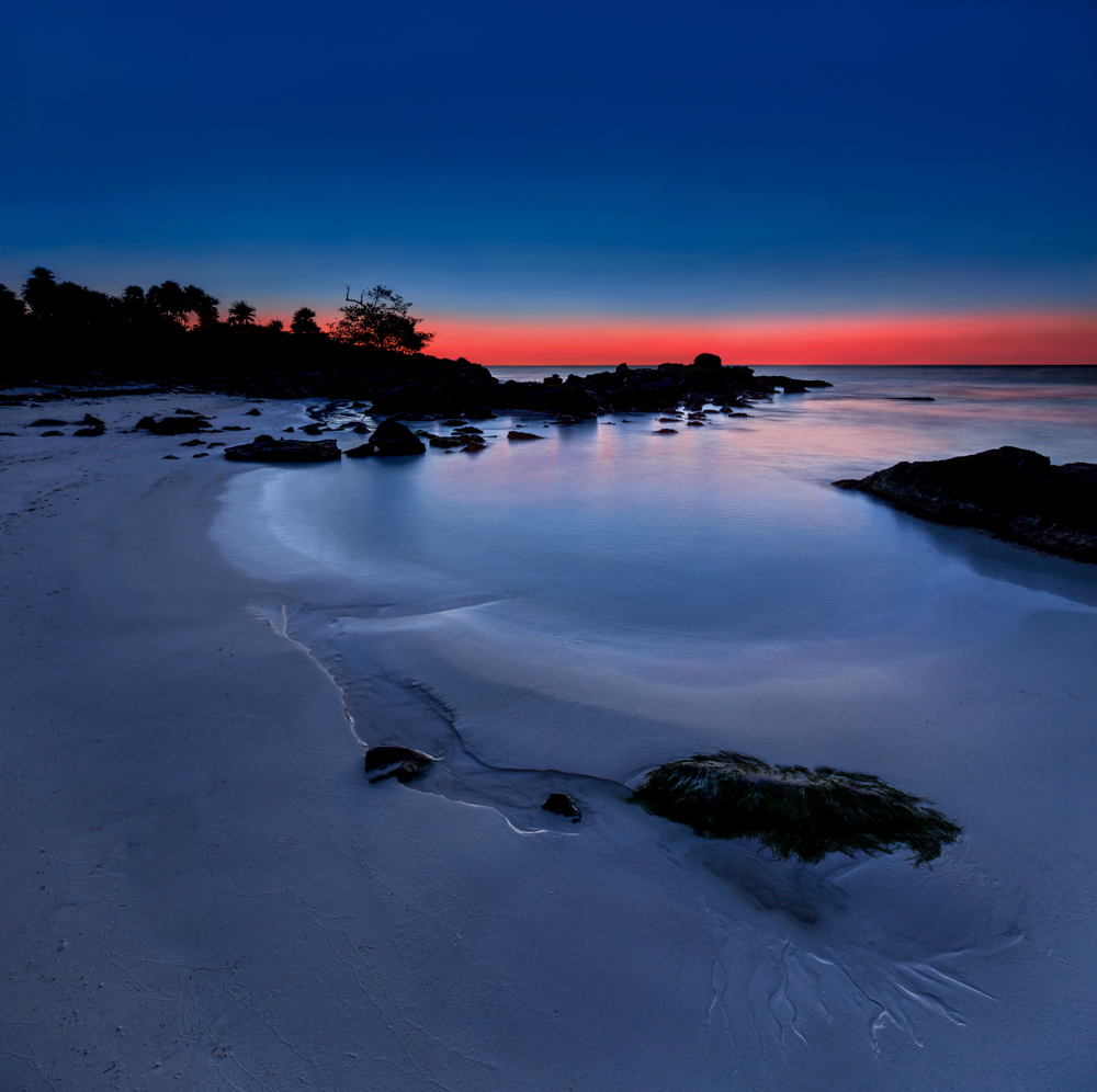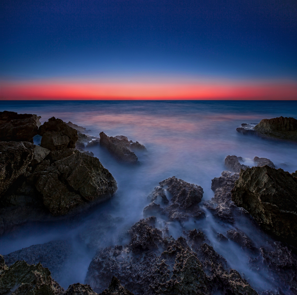 Very few times a year, there is a magic moment on the northeast cost of the penÃnsula yucatan in Mexico: a spectacular sunrise or sunset red. The cold front arrives from north and removes the clouds and invites the sun to illuminate the narrow strip where the sea and the sky come together.