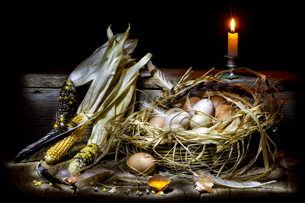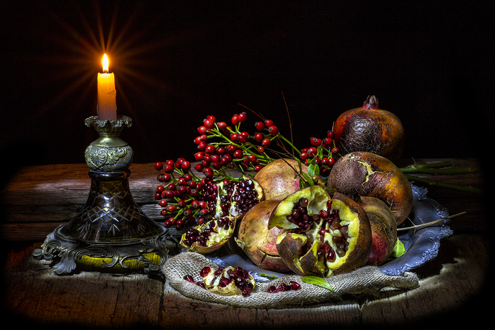 The photographs in this series are all made illuminating the scene completely in the dark with a small flashlight .