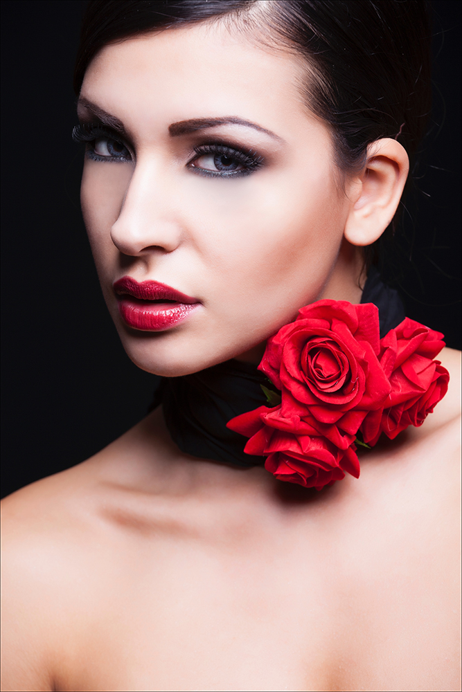 Are two sets of fashion portraits, focusing on expression and post appropriate to mood. The set with roses was made with studio flash lights, while the other in the outside with only ambient light in autumn.