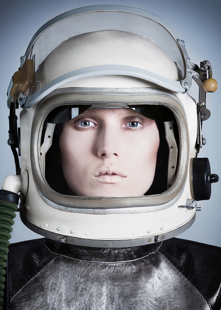 A fashion portrait from the edito "Space Oddity". The model has a soviet helmet that I love; helmet GSH6 of Mig plane.