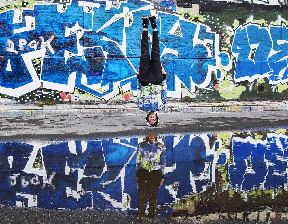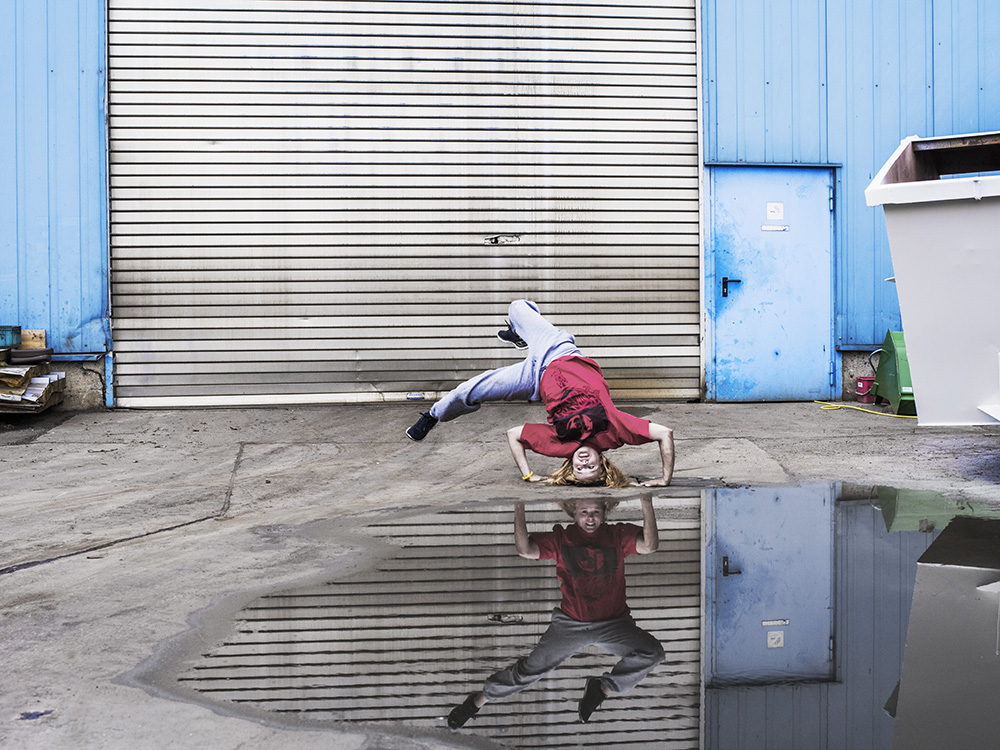 My pictures want to illustrate the spirit of breakdance. Usual backgrounds mutate from the sculptural movements of the breakdancer into abstract sceneries. For me, the acrobatics of these dancers are not the main factor, but rather the integration of these movements in the general view.These pictures originated in 2015.