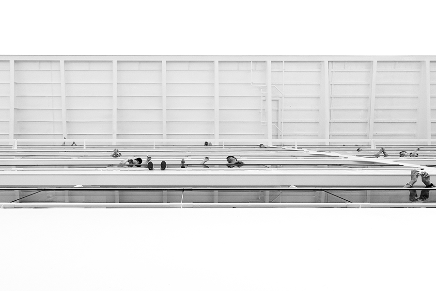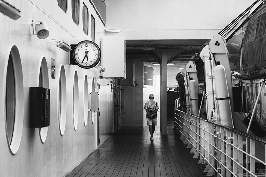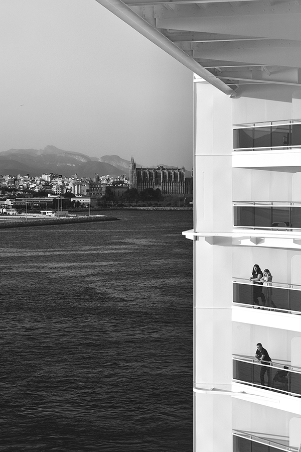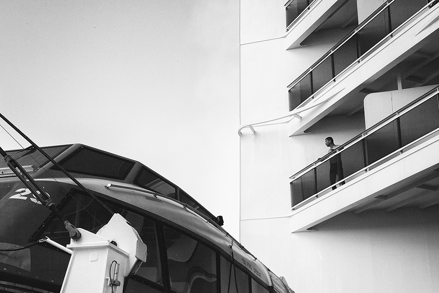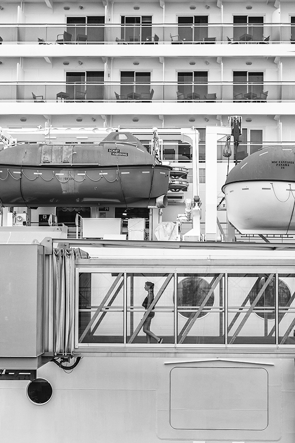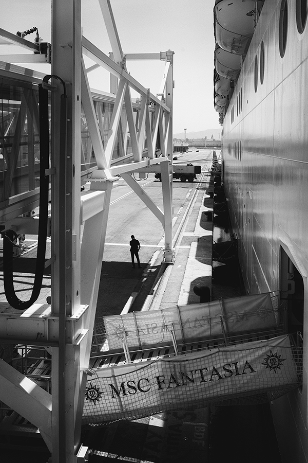 Every year in Europe cruise ships transport more than 100.000 passengers to every port in the world. These truly amazing cruise ships, brilliant, and shining cities on the seas are small, but contain the most important concentration of people from all over the world. So, whoever you are, whatever your life is, here, you can lose your identity to become part of an enormous mechanism that cycles around and renews itself continually. It becomes one body, everyone, and no one, without any connection or reality to one’s own being.