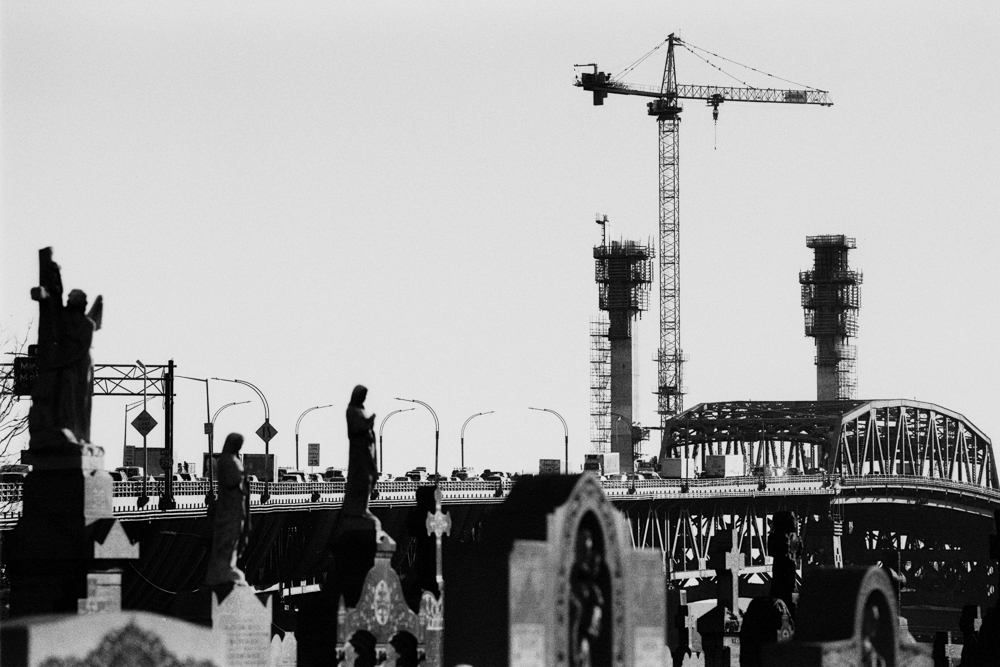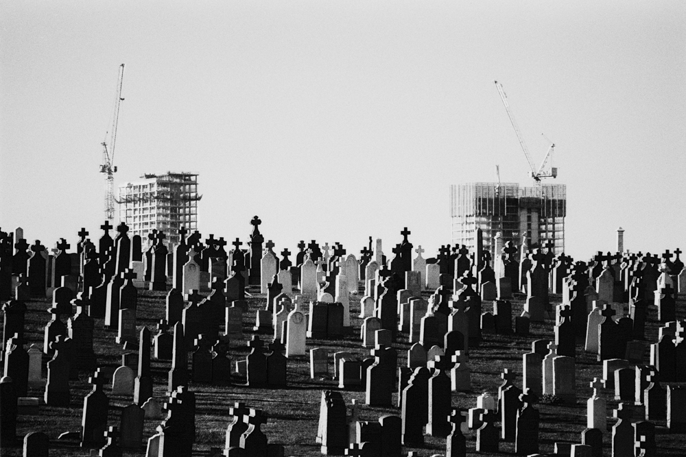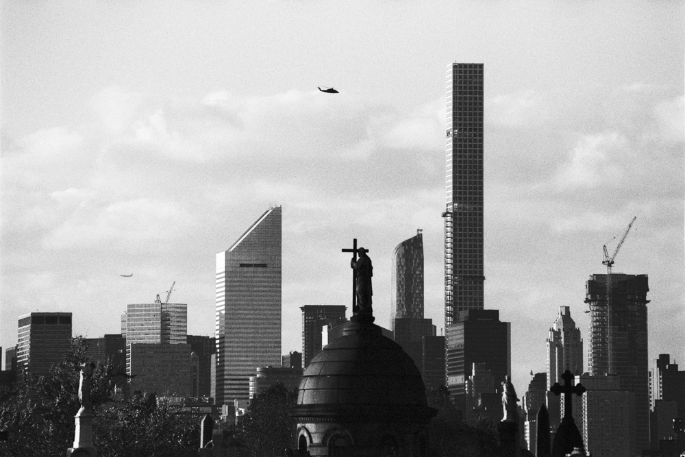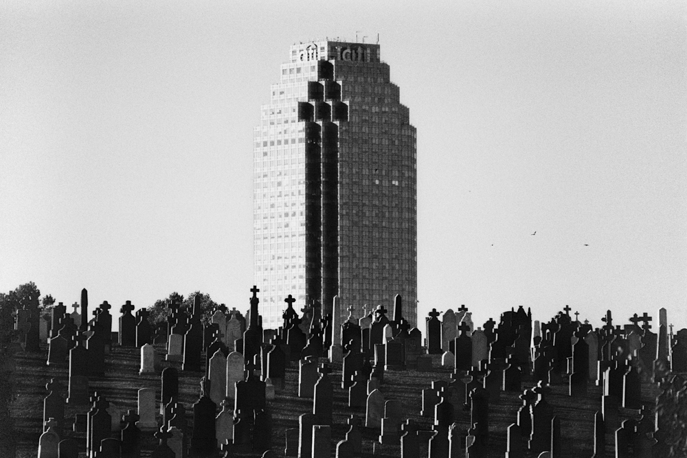 Many cemeteries of Queens are something of mirrored cities to New York City. Across the East River, all kinds of gravestones and graves erected on the hill like the miniaturized landscape of Manhattan skyscrapers. Compared to sleepless metropolis, this miniature city seems to fall into sleep forever. Such still is only occasionally interrupted by noise from surrounding freeways and several flying birds. While I pass between gravestones and look the skyscrapers of Manhattan emerging from the horizon, these familiar buildings’ shapes suddenly become strange to me. Sometimes, these gravestones before my eyes are mixed with buildings in the far. It’s hard to tell whether it is the top of gravestones or the top of skyscrapers. All urbanites finally will make their last one-way trip from a familiar city to another unfamiliar one. These two cities in front of me are situated in two different kinds of time and space, and they are divided by the boundary between life and death. However, they share some surprisingly similarity and uniformity to some extent.