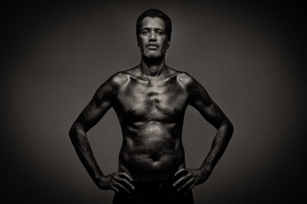 Bare Truth is a captivating collection of portraits of men who are humble, courageous and vulnerable. Their photographs expose and reveal who they really are. Their edgy portraits are presented in monochrome to emphasize their shape and form. The simple background eliminates distractions so the viewer can focus on their body language and facial expression.