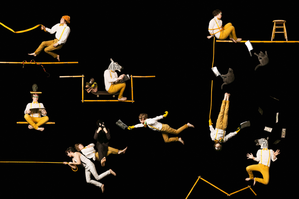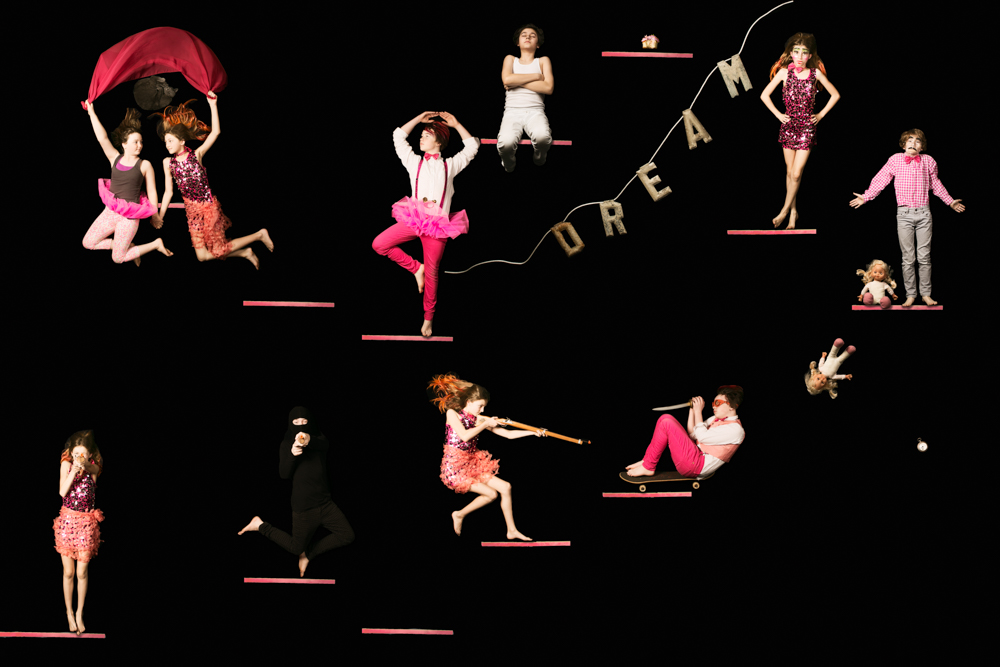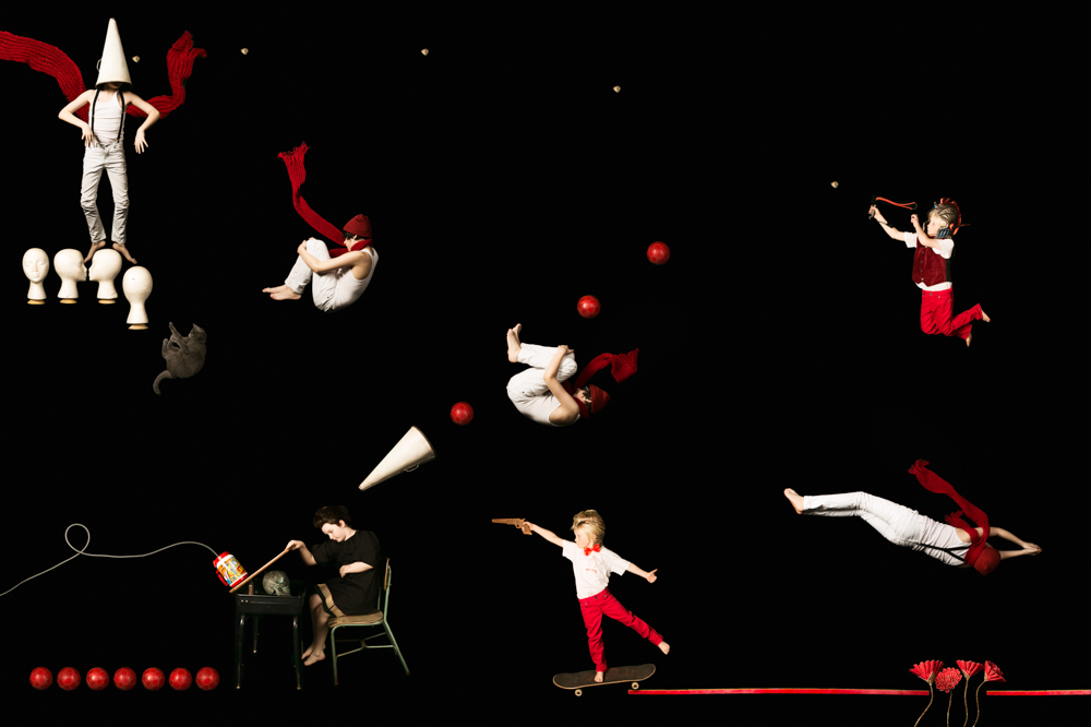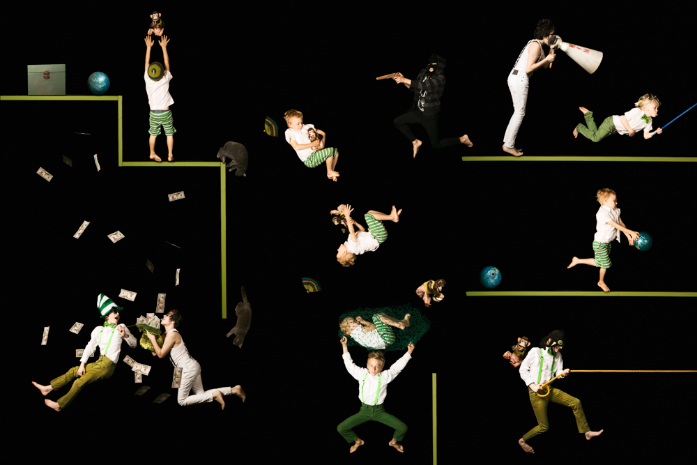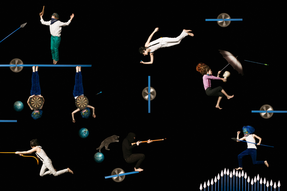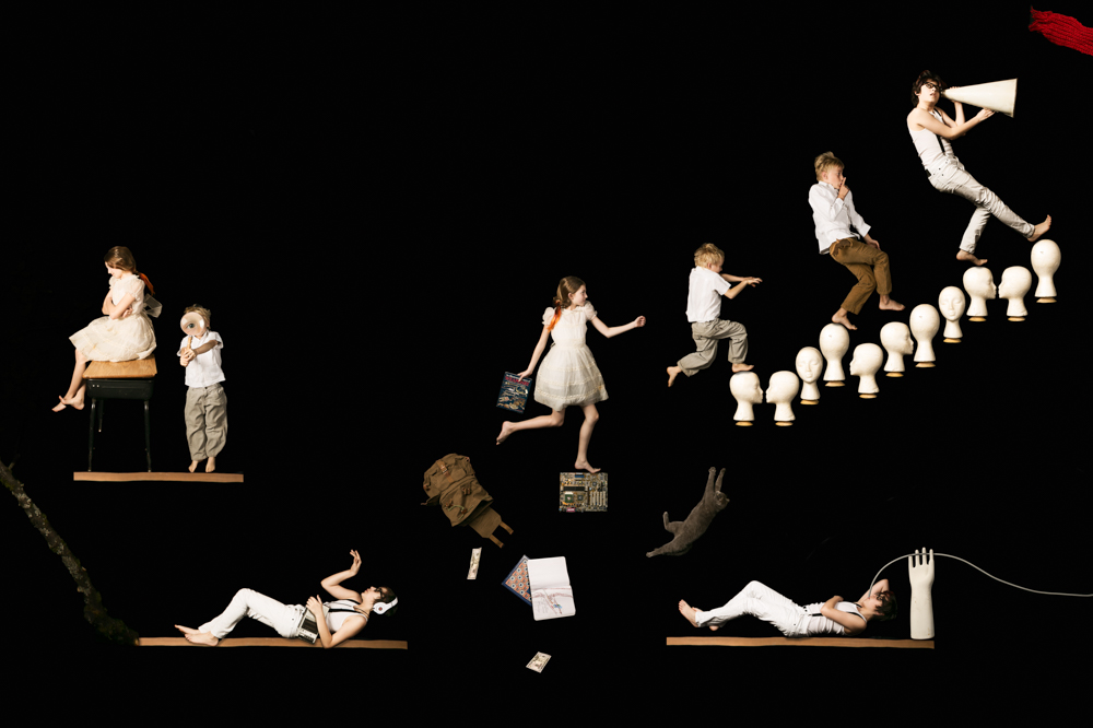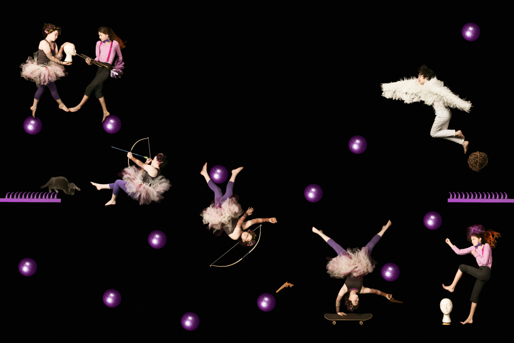 The Childhood Gravity Games series is an amalgamation of dreams, notions and playful diversions. A liberal use of enchantment is employed to create a childhood world that plies make-believe over reality. It’s not an adult world but a child’s fantasy so it’s a viewers challenge to penetrate. Take a tumbling romp through the acrobatic maze of spinning wheels, traps and magpie trinkets in this Rube Goldburgesque panorama. String together the complete set of images from White, Red, Pink, Orange, Yellow, Green, Blue, Purple to Natural or arrange them in a circle and you can potentially get a seamless - if not endless - framework of cinematic diversion.