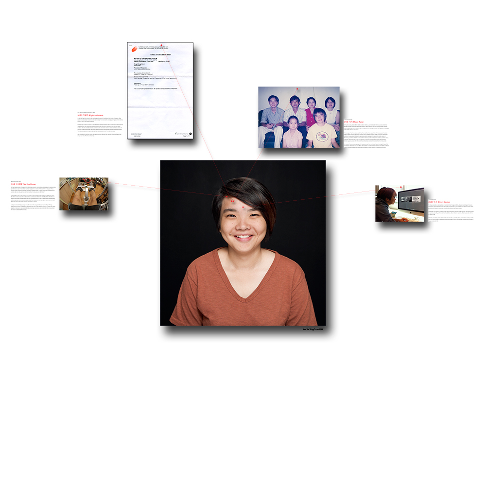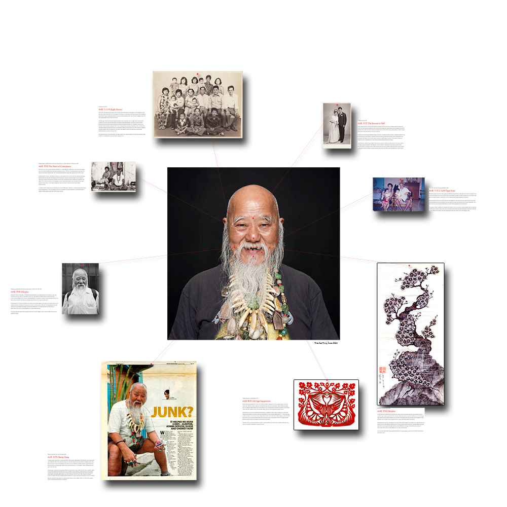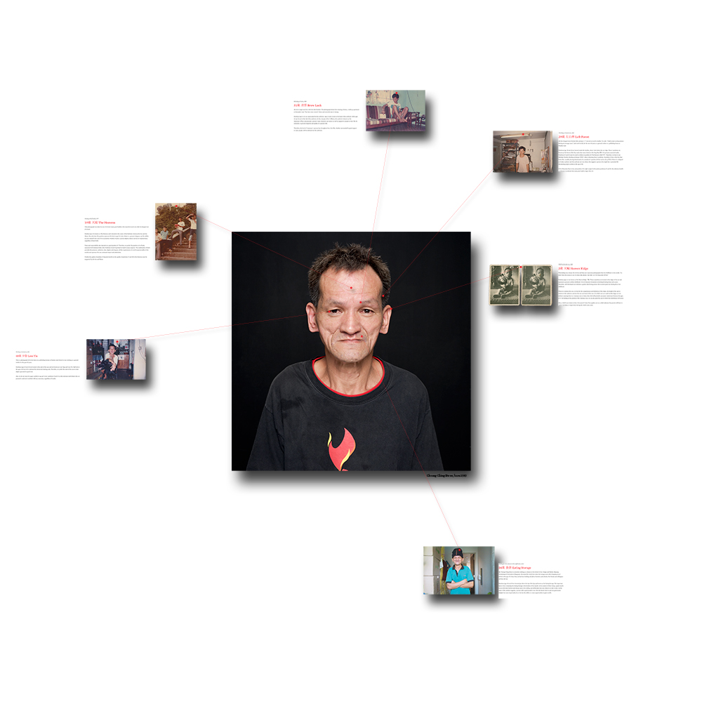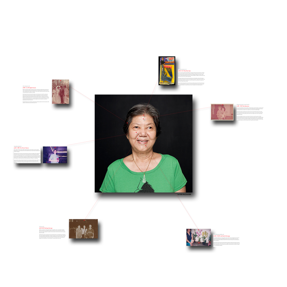 Stories Beyond the Portrait, 2012 Mixed media installation 150 x 150 cm Face-reading or Physiognomy is the art of reading the mind’s construction in the face and body. It is known to the Chinese as xiang, the character for which, 相, consists of the pictures of a tree and an eye. The Shuowen jiezi 說文解å—, a character dictionary from the Han dynasty, defines it as “eye meets thing†or “to inspect.†(Kohn, 1996). In Stories Beyond the Portrait, I am interested in this physiognomic inspection or reading of the face and the profound relationship of humanity’s inquiry into the metaphysical dimensions of life. Using the concept of the 100 Year Map 百æ²åœ– in Chinese traditional practice of face-reading as a vehicle and narration tool, this project investigates into a person’s life based on evidences from old photographs, documents and belongings. I invite you to read beyond these portraits, into each individual’s memories, to learn and experience their unique stories and journeys. http://www.visualgarden.sg/mian_xiang.html