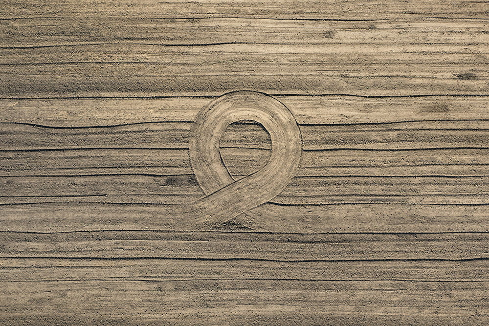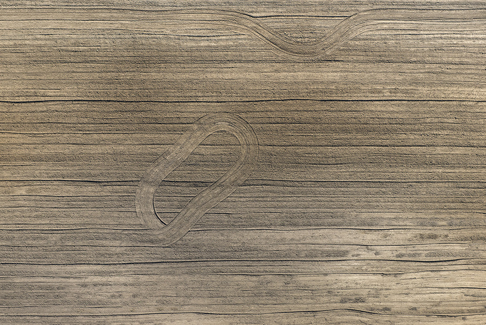 I've started photographing fields more than 10 years ago. I fly on a paraglider in search of interesting arrangements of color, shapes, spots, rhythm and associations. For several years I am fascinated by these less spectacular, minimalist paintings. Traces of human labor, sometimes delicately decorated with trails, wandering wildlife.