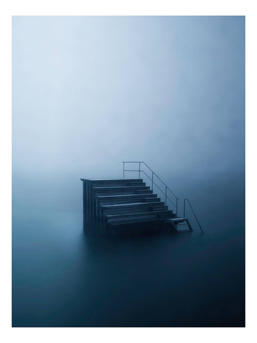 Dense fog surrounding an empty jetty