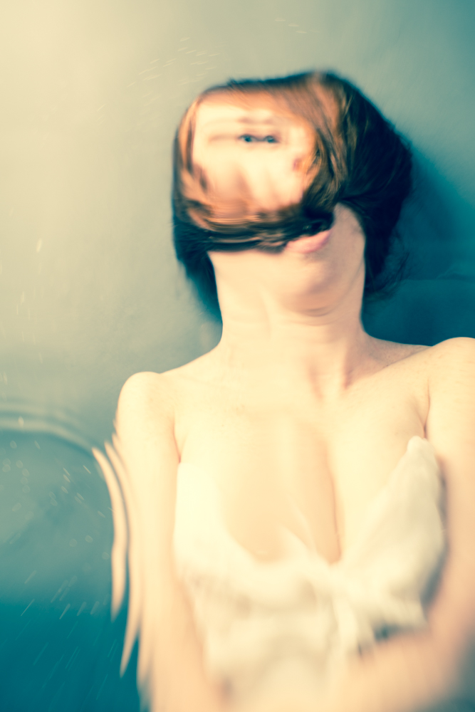 Most stories have a beginning, middle and end and yet many untold tales are stuck somewhere in between. The photos in this series are mired in that space between start and finish, longing and loss, waking and sleep, fear and safety, life and death. A tribe of dreamers traverse a lyrical landscape. A soothing and sometimes treacherous aqueous blanket appears to envelope the characters like an amniotic sac. Emotions and dreams float randomly, rising and submerging and breaking into cubist expressions. As a human, a daughter, a wife and mother, I've experienced loss, longing, fear, birth and joy in unequal parts. In the course of exploring these discordant perceptions, the camera is one of many tools I employ to grasp at them. DEEP in Between is an experiment with the unpredictability of life. Light flares, focus and loss, texture and blur, gravity and weightlessness are effects that capture that experience. Although this series may appear to be manipulated in the digital darkroom it is entirely captured through the camera in the original exposure. Only spotting and color adjustments have occurred in post. To explore making a surreal finished image — as early as the initial shutter snap — is one of the challenges that I set myself.