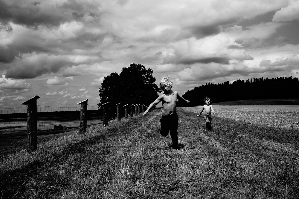 The series shows childhood in the magic, nostalgic sense of the word: The photographed children live in the moment, in the moment of happiness, freedom, laughter, play, thought, wish. The photographer captures this moment without invading the children while at the same time the pictures are close enough to awaken a sweet remembering sigh in every grown-up observer.