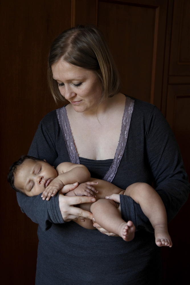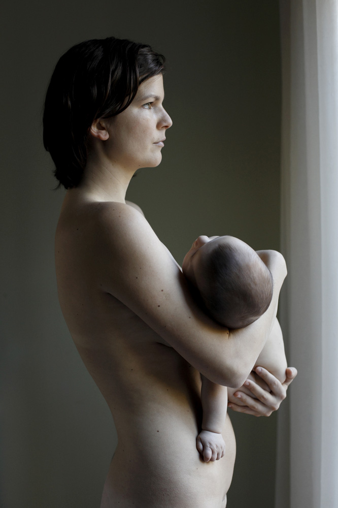 These pictures are part of the series IN THE ROOM, the statement follows: A secluded and silent place where a mother puts her child to sleep through breast-feeding. The transition between waking and sleeping, as the fulfillment takes over every resistance and distraction. The mother’s solid presence consciously supporting the baby’s passage into unconsciousness, renewing the ritual, everlasting gestures of former generations of women. A suspended time of devotion and tenderness that coexists with the alienating repetitiveness of a daily routine. These are the main issues explored by the pictures, to describe the atmosphere of a private and symbiotic moment, exclusive of the experience of maternity.