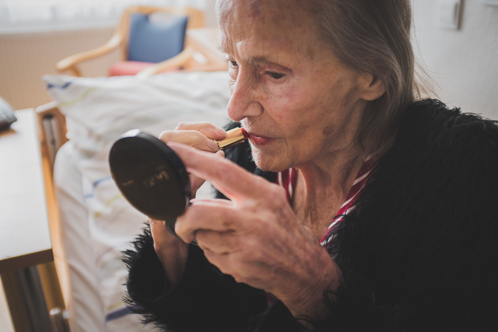 My grandmother Helga von Randow was 92 years old. On the 18th May 2015, I received a phone call from my mother. She told me that she had just collected my grandmother from the police station. She had been found wandering through the streets lost at 2am, wearing nothing but a T-Shirt. “It cannot go on like thisâ€, my mother said. A few days later, on May 29th, my grandmother was moved out of the apartment in which she had lived in for 55 years, into a retirement home. The state of her dementia had deteriorated so much that she couldn’t be trusted to live by herself any longer. On the 29th October, 5 months to the day, my grandmother passed away. Over the course of these five months, I visited Helga as often as I could, spending quality time with her and documenting her daily life. I am grateful that I got to spend so much time with Helga during her final weeks, doing all the things she loved most: playing card- and dice games, listening to her favorite singer Udo Jürgens, taking her out for walks in the park, and having iced coffee in an Italian cafe. Photographing Helga has helped me work through my own pain of losing her, while trying to understand what was happening to her identity: at times she was interacting like her old witty self; at other times she would be in another world, listlessly staring into nothingness. As time progressed, the effects of Helga’s illness, not only on herself but the other family members, became apparent. No one likes to think about death. When we do we inevitably question our own mortality. We feel helpless when faced with demise, trapped in its consequence and inescapable finality. Yet, the awareness of how limited time is, makes one appreciate each shared moment so much more. This body of work is a tribute to my grandmother, whose grace and courage never seized to amaze and inspire me.