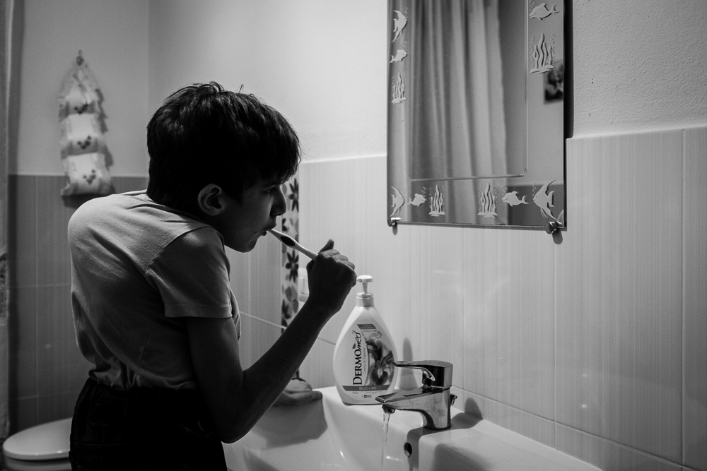 This is a photo project on a serious rare disease that affects children; currently in Italy only 10 cases were diagnosed and even the doctors don't know this syndrom as well. So the families of these children are obliged to understand, test and treat the syntoms almost by themselves. Trisomy 9 Mosaic is a rare chromosomal disorder for which the chromosome 9 appears 3 times (trisomy) rather than 2. The term 'mosaic' indicates that the chromosome is not present in all the cells but only in some of them. Associated symptoms and results may change substantially according to the percentage of cells with the extra chromosome. However, the common features include slow growth before birth, mental retardation, heart structural malformations and distinctive features of the skull and face like a sloping forehead, and malformed ears. Individuals with trisomy 9 mosaicism can vary very much one from another. He is Giuseppe.
