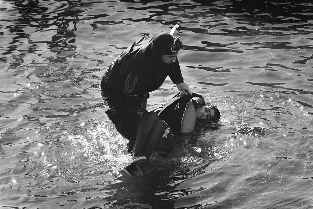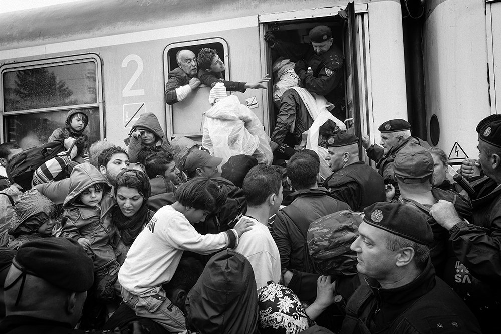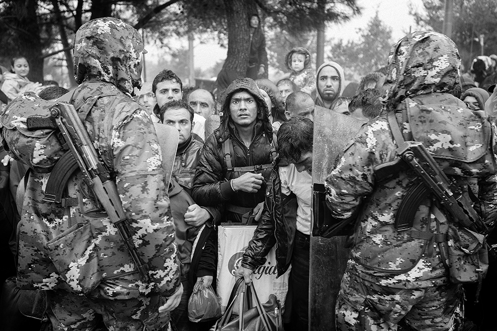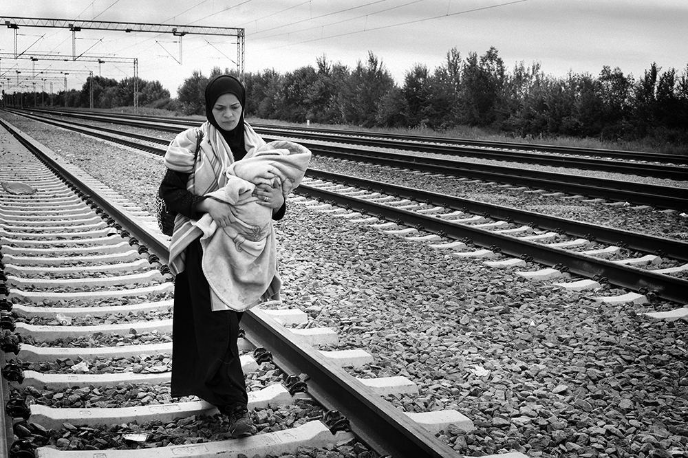 The images in this series are a part of the photographic work done following the routes of migrants from the island of Lesbos in Greece via the Balkan route , crossing the borders until reaching Calais , in northern France