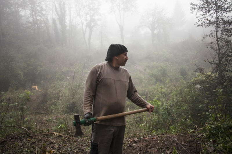 Piedmont, Italy. In 2014 the Langhe-Roero-Monferrato area – corresponding to the southern-eastern part of the Piedmont Region – was nominated a World Heritage Site by UNESCO and it was listed among the world top destinations to visit in 2016 by The New York Times. A few months ago the Piedmont Region, in collaboration with Magnum Photos, organized the residency ‘Langhe Project’ directed by Alex Webb and Harry Gruyaert (Magnum Photos) with the aim of describing some distinctive aspects of this area, well known for wine production. As a photographer, I have been asked to give a personal interpretation of the places of interest and I have focused my research on the relationship between man and environment in one of the greatest wilderness areas of Italy. Living the vineyards in the background, I immersed myself in woods and little villages far away from large inhabited areas, in search of people that have a strong connection with the identity of the area and who live in very close contact with nature. The result of my research is ‘Ai Piedi del Monte’, a name that refers to the morphological character of the area, downstream of the Region mountains, and that is the literal breakdown of the name Piedmont: Pied – Mont (At the Foot – Of the Mountain). ___ CAPTIONS: •AiPiediDelMonte_001-Gianluigi Mazza has been a hunter from the age of ten. He has a perfect knowledge of all that is hidden in the woods of Viarigi, Castagnole Monferrato and Montemagno. But he respect the animals that live there and he never shoots again after the prey escapes. – Montemagno (Asti), Piedmont, Italy •AiPiediDelMonte_002-Single-barrelled shotgun. It can only shoot one load of shot at time. – Montemagno (Asti), Piedmont, Italy •AiPiediDelMonte_003-Gustavo Musso collecting wood for the winter in the wood downstream of Costigliole d’Asti. – Costigliole d’Asti (Asti), Piedmont, Italy •AiPiediDelMonte_004-Stock of wood in the wood downstream of Costigliole d’Asti. – Costigliole d’Asti (Asti), Piedmont, Italy •AiPiediDelMonte_005-Mario Bello has spent his life working in the fields and founded his family-run farm. At the age of eighty-four, he still has plenty of strength to drive the farming machines and the tractor in the fields. – Govone (Cuneo), Piedmont, Italy •AiPiediDelMonte_006-A stubble field near Pocapaglia. – Pocapaglia (Cuneo), Piedmont, Italy •AiPiediDelMonte_007-Andrijano Kokanovic arrived from Serbia in the Langhe four years ago and has been a shepherd since that time. In his herd there are thirty-four cows that he grazes in the fields around Rocchetta Tanaro. – Rocchetta Tanaro (Asti) •AiPiediDelMonte_008-A herd grazing near Rocchetta Tanaro. – Rocchetta Tanaro (Asti) •AiPiediDelMonte_009-Fabrizio Fassio and the marc obtained from pressing grapes. With this marc the Moscato d’Asti of his winery will be produced. The wine produced in Langhe, Roero and Monferrato is exported all over the world: in fact, this area of Piedmont is one of the greatest wine-producing areas of the country. – Santo Stefano Belbo (Asti), Piedmont, Italy •AiPiediDelMonte_010-The marc obtained from pressing grapes. With this marc the Moscato d’Asti will be produced. – Santo Stefano Belbo (Asti), Piedmont, Italy