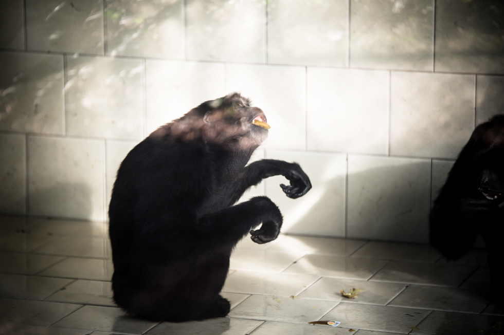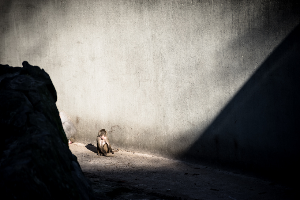 (Premise: This photographic project, developed in some zoos in Europe, does not deal with the conditions of the animals housed, but a purely conceptual work) Projection into the future of humankind on a different planet from the earth, perceived through observation of exotic animals bred in captivity in zoos, and particularly primates, with whom we share up to 99% of our DNA. Imagine the preservation of our species through scientific research, the creation of artificial habitats and conservation programs, as applied by modern zoos the animals that inhabit them. From these shots I can feel how man could live in a permanent colony on a planet far from Earth, in precise and defined program areas. Same expressions caught in the eye of primates could see the man who lives inert maintenance cells, with well cadenced needs. The project is titled Abert I, in honor of the first monkey astronaut launched into space on June 11, 1948 by NASA aboard the rocket V-2 Blossom, in the White Sands resort in New Mexico.
