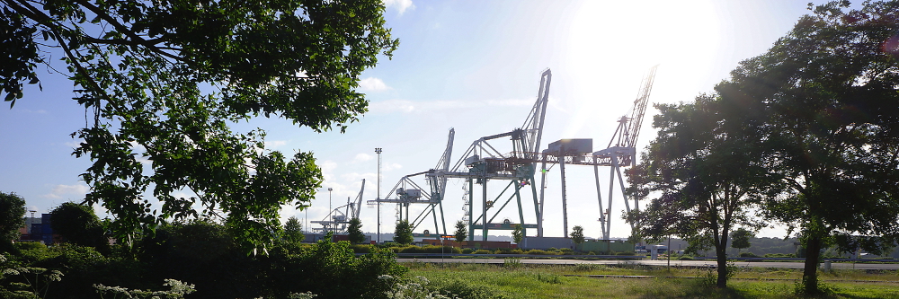 This series of photographs is about the tension between man and nature in an industrial landscape. The Port of Rouen on the river Seine is Europe's number one port for grain export. And yet, on that July Sunday afternoon, it looked deserted, a playground for bold weeds overgrowing the slopes along the connecting roads or the backyards of warehouses. It looked as if man, after building these huge constructions, had left the place and this—momentary— desertion brought out a strangely beautiful landscape, designed by man and yet from which he had slipped away.