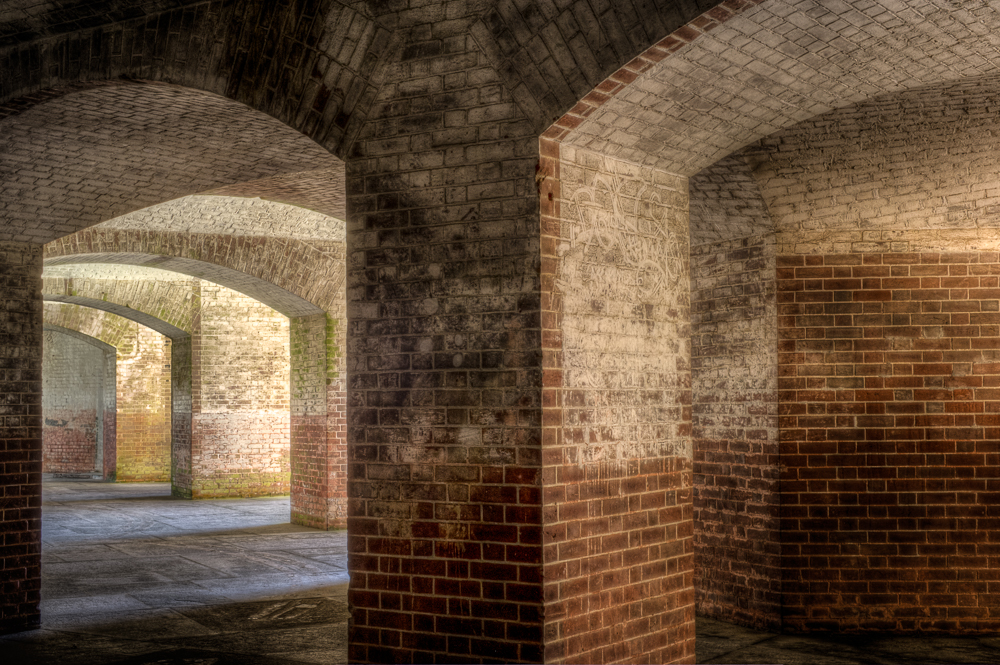Civil War fort under Golden Gate Bridge on San Francisco, California, end.