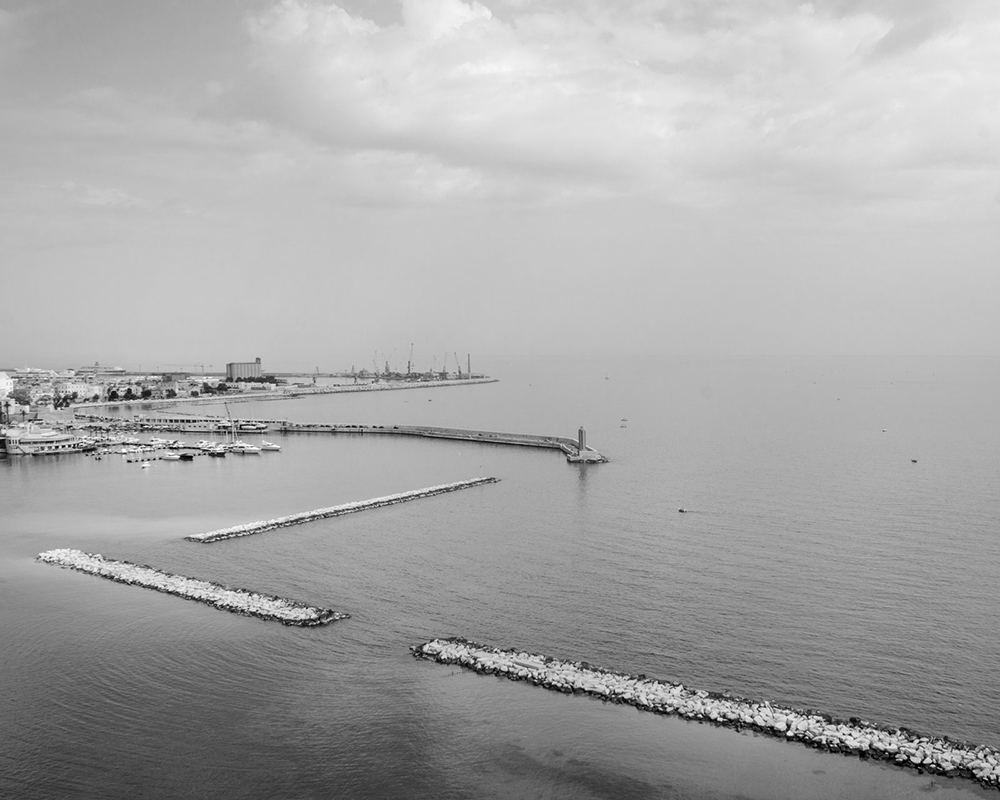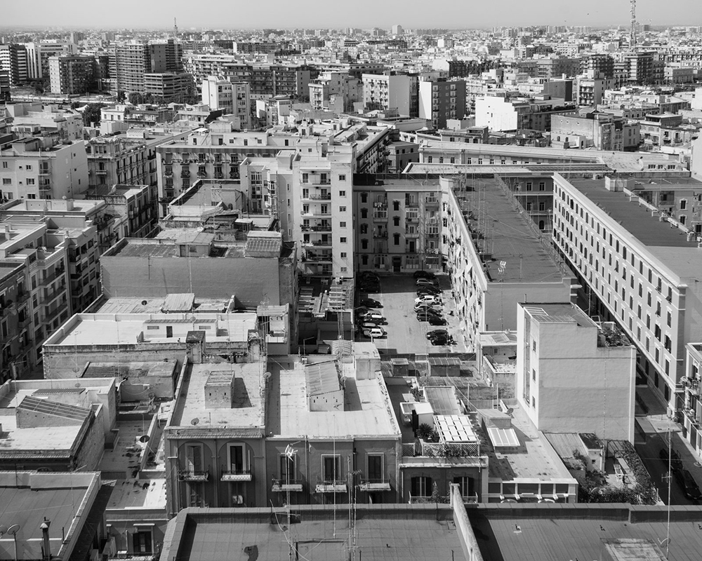 It’s a selection of 40 b&w photos of Bari, my hometown. Following the lesson of the great Italian photographer Gabriele Basilico, I started exploring it trying to look at familiar places with new eyes, like a "tourist" who gazes at an unknown place and discovers interesting aspects which, on the contrary, escape the superficial eye of the hurried city dweller for whom those aspects and places have become stereotypes. This approach allowed me to achieve a better knowledge of my hometown, wandering in areas where I had rarely or never gone; I let myself be surprised by hidden and unexpected sights, sometimes in sharp contrast, sometimes in harmony, which were revealed by stripping them of their "banal", surface appearance. Thus the city appeared to me under a different light, offering different keys of interpretation. I chose black and white instead of colour considering that, while colour contains many interesting, appealing but distracting elements, black and white allows the viewer to concentrate on the volumes of buildings, on the contrast between empty and filled spaces, on the relationship/ contrast between constructions and gives a uniform tone and mood to the sequence of images. The book does not intend to offer a complete and thorough representation of Bari (thence the title, ALMOST BARI), but a personal view, an approximation of what a city may look like with its many contrasts, aspects and constant transformations which characterize every place built by man.