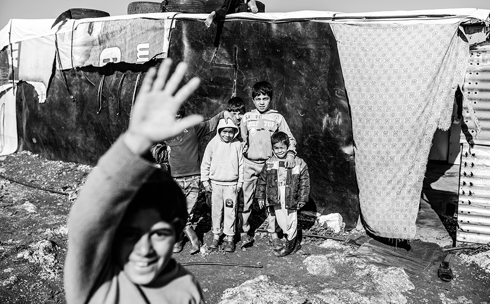 Syrian refugees in Lebanon, in the Bekaa Valley on the Syrian border and in the south on the Israeli border. Despite the difficult life and have lost all, children have the strength to smile and play carefree.