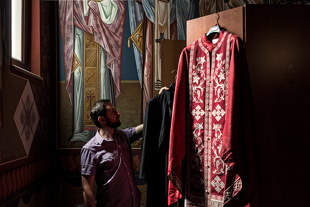 Father. A word that encompasses human and sacred, in which the divine relationship is premise to give meaning to being ground. Light and matter. A father is the begetter of life on earth, and the Father is the One to whom life itself is returned when the time is over. It longs as a refuge, saving hero who can do all and denies, in daily steps as a parent and as eternal as God. And here is a young man, little more than a boy, covered with religious authority and conscious householder inspired by rigor and idealism in the sacrament of marriage, represent the dual aspect of his father in his everyday gestures. It comes from Romania, where Bucharest was devoted to theological studies of the Orthodox Church. Since a few years as a priest was sent to cure an Orthodox community in Italy, with the mission to carry on the tradition of the Byzantine liturgy. The sanctity of his life among the people and in the home, between the faithful and their children, is enhanced in accordance with the religious and moral traditions that express love and continuity. A Father, always and everywhere. Father Liviu.