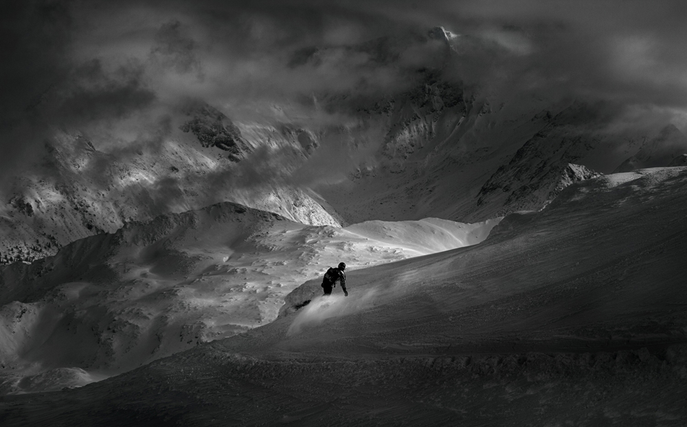 This series should convey a beauty of the mountain scenes, the lonelyness of a "small " man