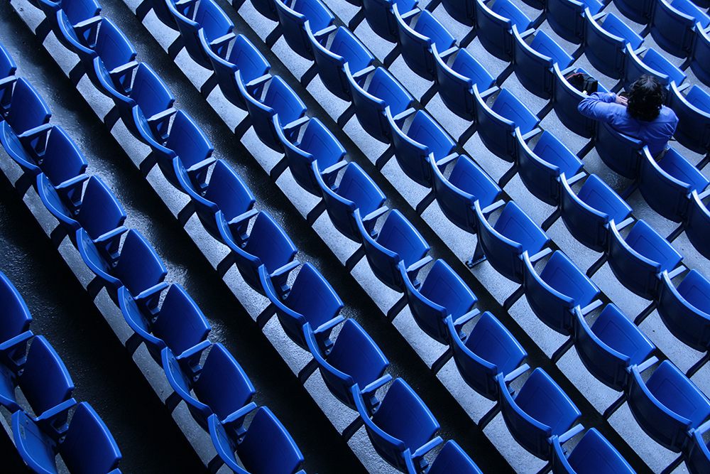 Team owners want to see every seat occupied, but this solitary fan, watching the game from far down the lonely first-base line speaks to the true spirit of being a fan. Always there, no matter the weather, no matter the stats, loyal forever.
