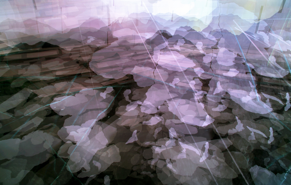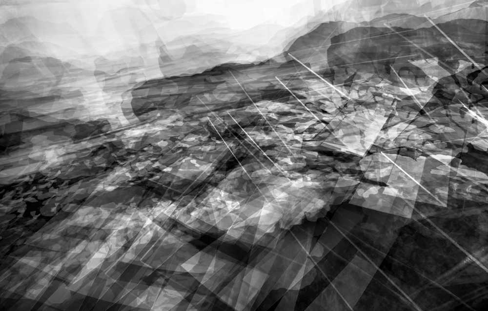 the fotos were taken in 2013. the photos are an overlapp of pieces of paper, that were cut out and laid out on the floor. the pieces of paper were photographed in different positions of the camera, during a long exposure.