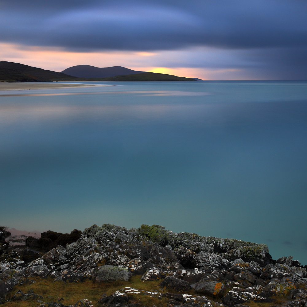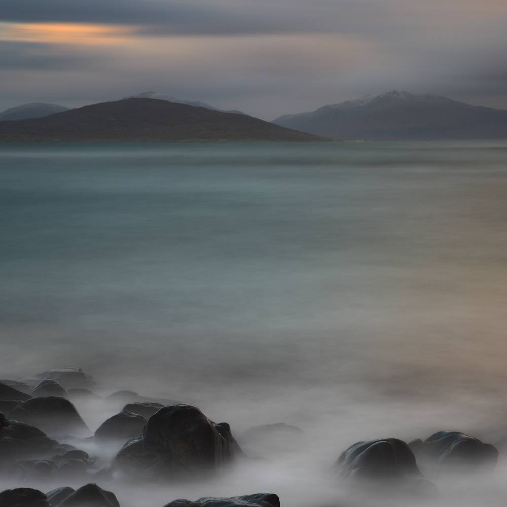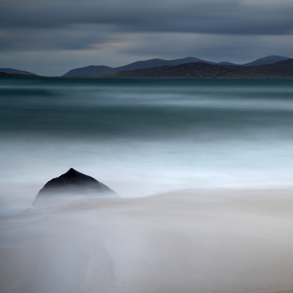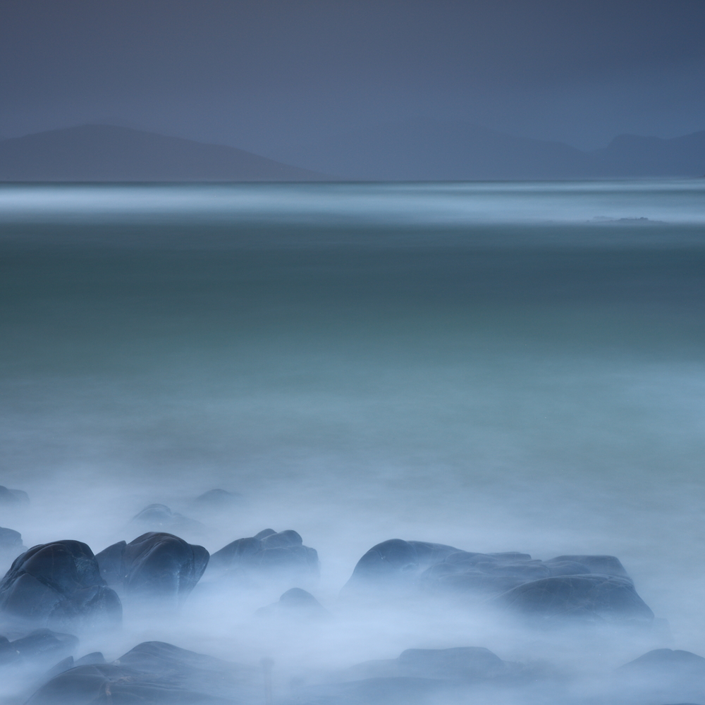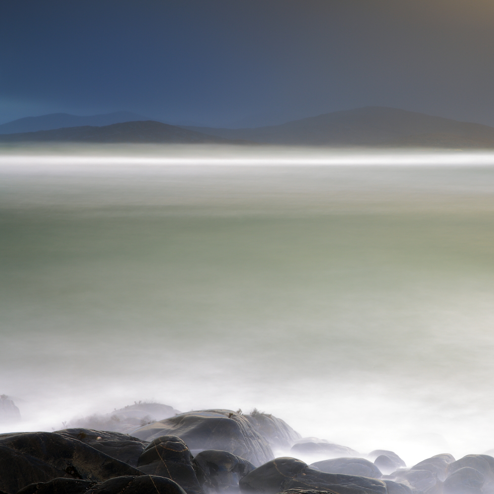 I took pictures the moment of rain stops with long term exposure technique to express of dramatic water color. Isle of Harris / Scotland
