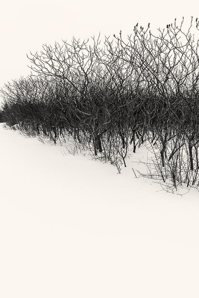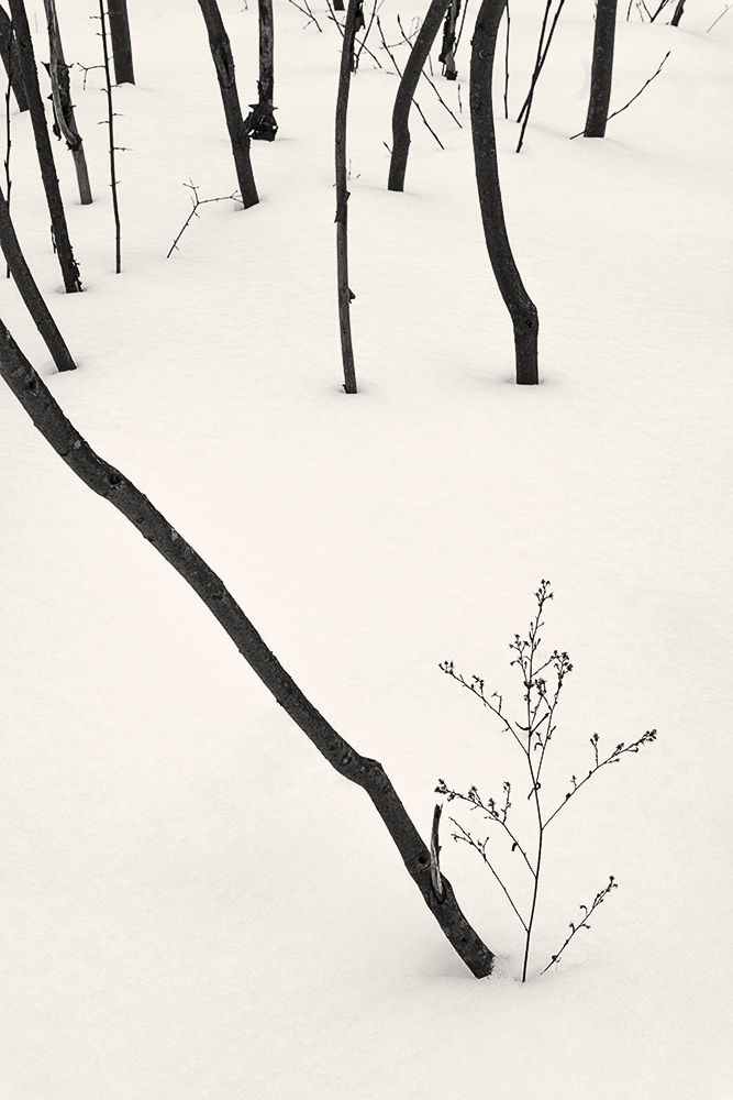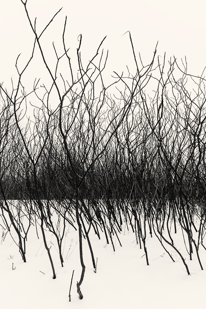 I have selected eight photos from my Winter series. Living in Canada, I am fascinated by the graphic potentials inherent in winter, a season especially imbued by a monochrome, silent beauty. In these photos, I have tried to capture this aspect of my surroundings.