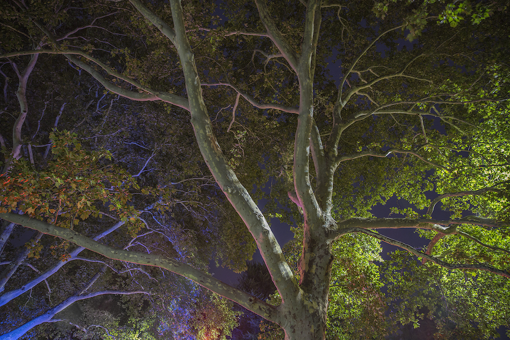 I shoot dioramas and "portraits" of trees at night - mostly in New York, but also in Washington, DC. with plans for more cities. I use only available light and I like to say I look for "million dollar lighting packages" when I go out shooting. I find greater impact at night, when "the veil" is thinner and you feel the essence of the tree much more. They exude mystery and magic and power that goes unnoticed in the day. At night you're drawn into the untold stories presented in these dioramas. There is a delicious irony that these magnificent natural beings somehow seem more alive when they appear more artificial - as if they are characters in museum dioramas. Overall, it’s a merging of man and nature in a mostly harmonious way, with a hint at man being a supporting player in the complicated field of nature.