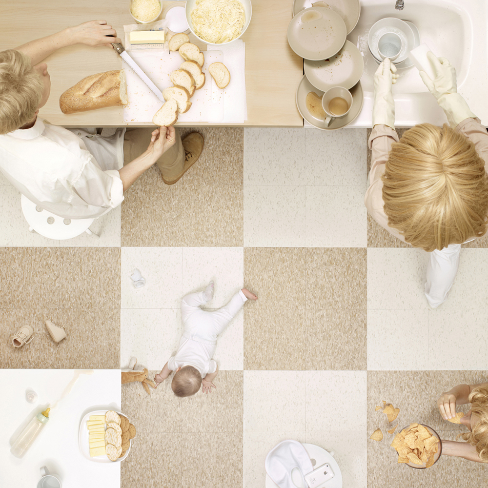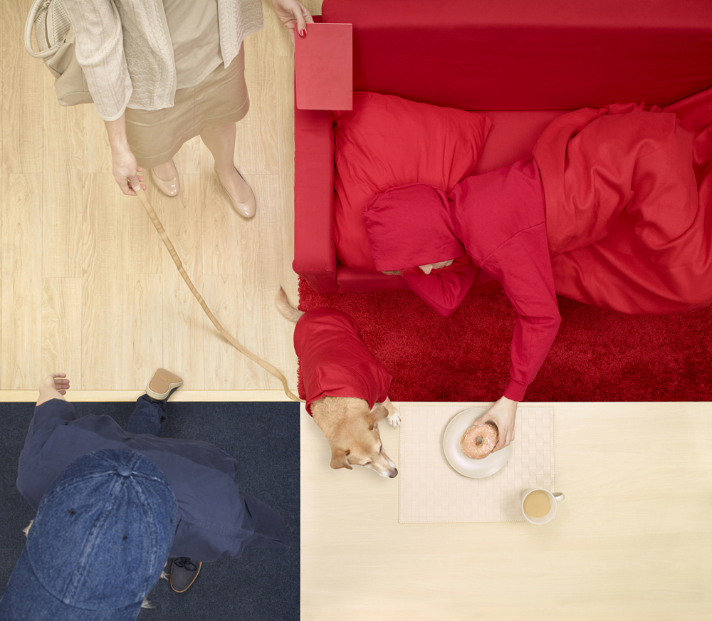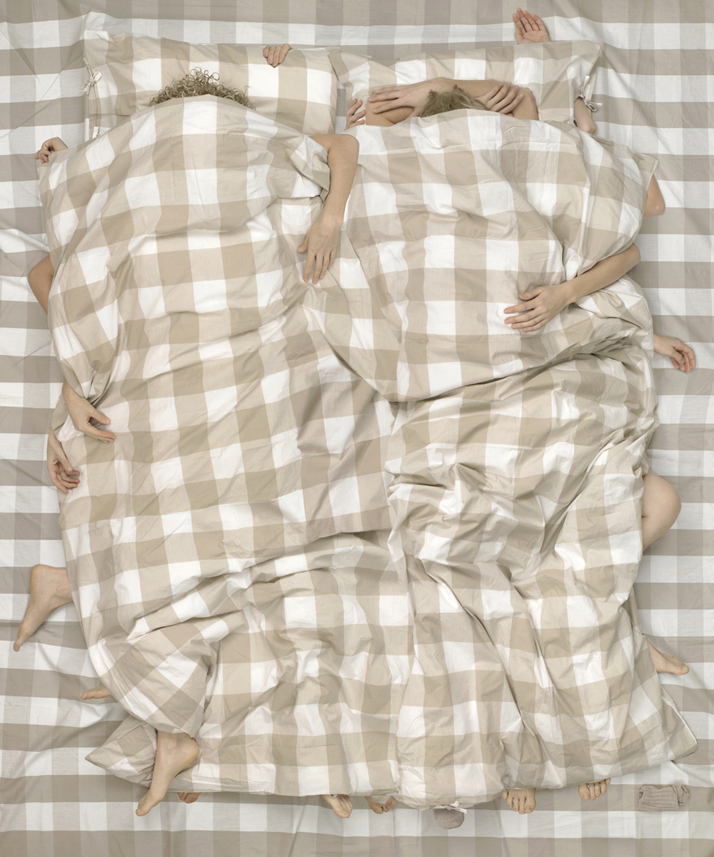 Sign Language is a series of photographs that collapse everyday life into a form of abstraction. The images are about the fragility of identity in relation to commercial products. Each image is a domestic scene that is then deconstructed into varying levels of chaos and order, obscuring the identities of the figures within them. Focusing on excess, specifically the excess of consumer culture, media and our constant need to capture the moment, Sign Language reveals how these excesses influence personal identity and expression. By camouflaging families, couples and friends into consumer products, these images explore how the idea of home is being altered through the process of constant consumption.