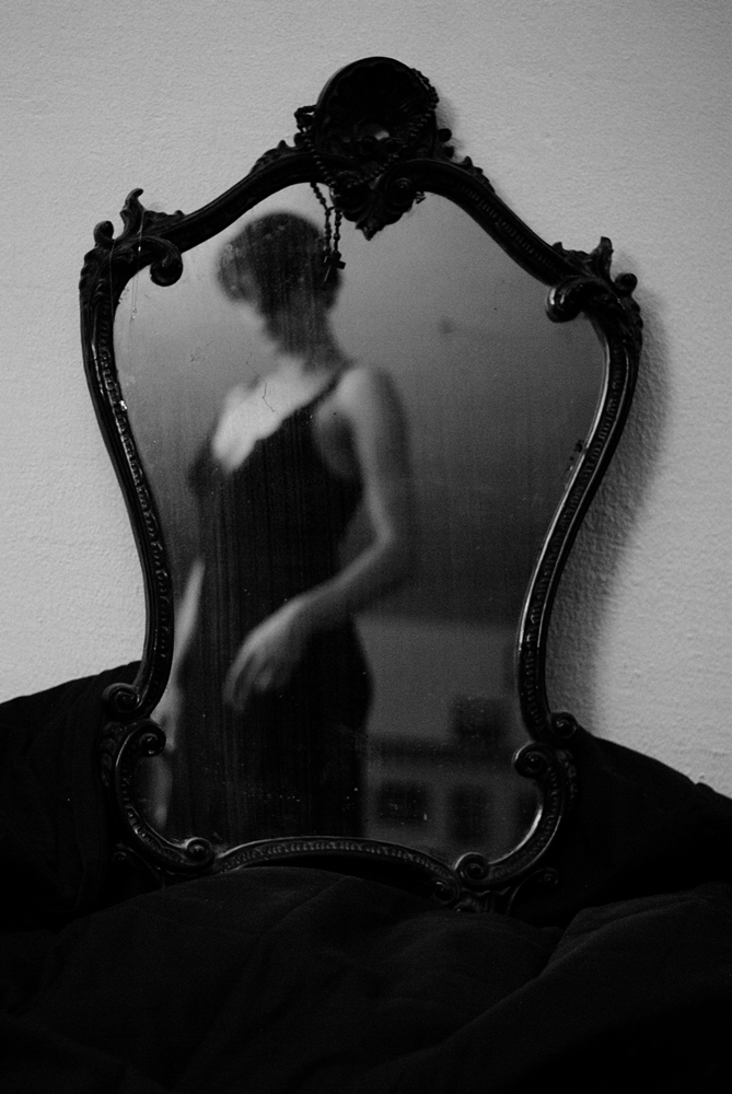 I have photographed people and landscapes, filling the space, filling the distance between the camera lens and the subject (with his or her inscrutable identity) with window mirrors,and others... trying to give an allegorical representation of the notion of mask. The mask as an allegory of the need to defend ourselves. The mask as a protection we wear, even at the perverse risk of identifying ourselves with it and become our own fake face.