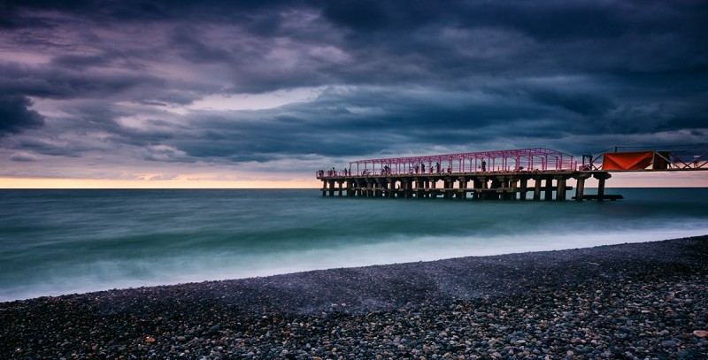Evening in Georgia. Black Sea. Photos were made in a single night near the pier with different techniques of shooting. It was a very long exposure with a plurality of filters and without them. It's gave images with relevant saturated colors. September 2014.